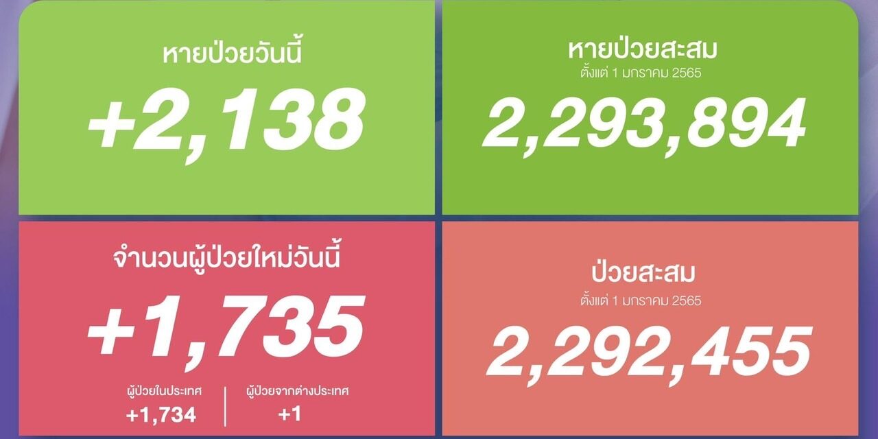 หายป่วยสะสม 2,293,894 ราย (ตั้งแต่ 1 มกราคม 2565)
