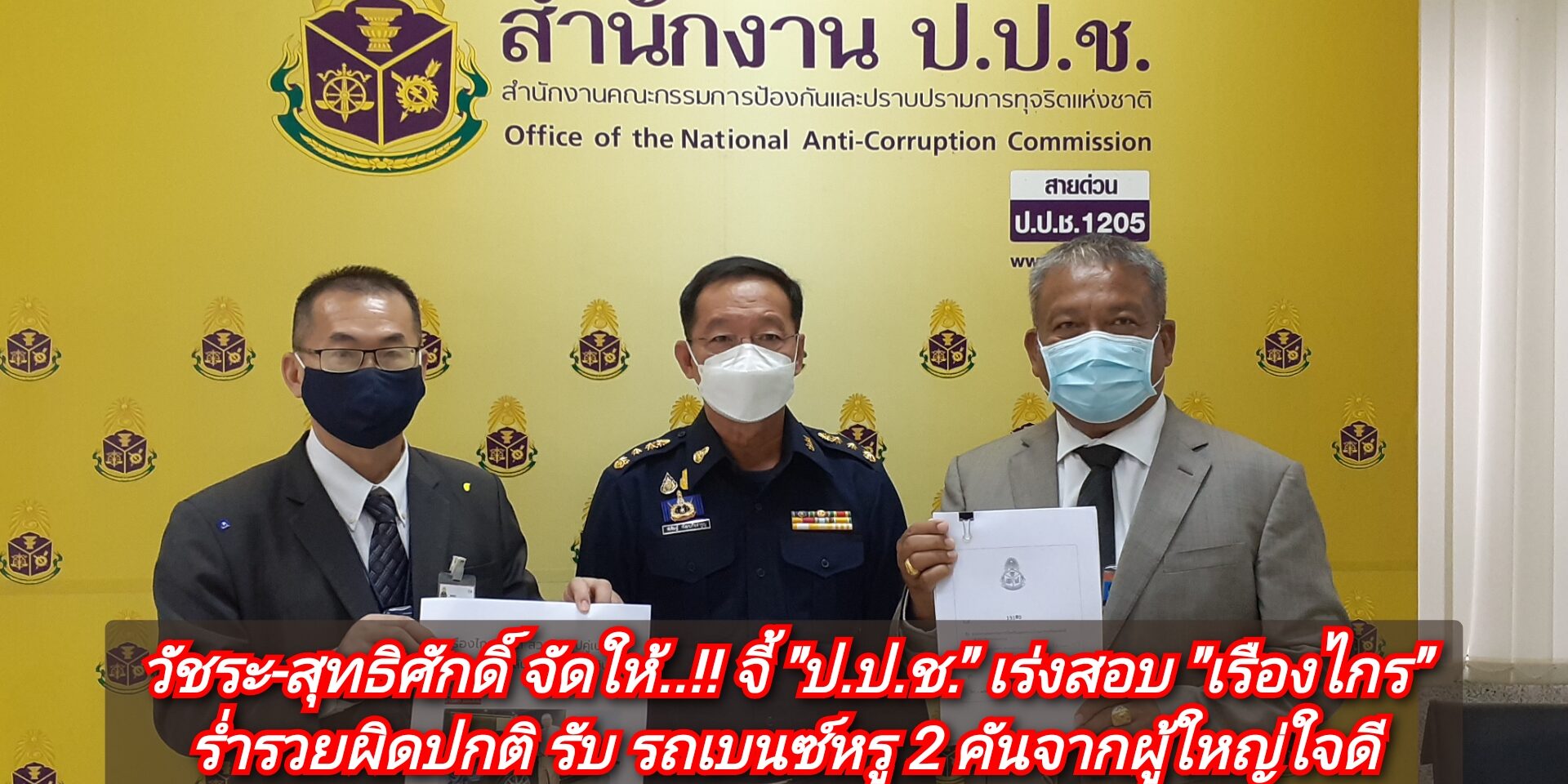 (27มิ.ย.65)เมื่อเวลา 11.00 น.ที่สำนักงานป.ป.ช.นายวัชระ เพชรทอง อดีตส.ส.พรรคประชาธิปัตย์ และว่าที่ร้อยตรีสุทธิศักดิ์ ประศาสน์ครุการ ยื่นหนังสือผ่านนายพิศิษฐ์ พัฒนกิจจำรูญ ผอ.สำนักสืบสวนและกิจการพิเศษ ป.ป.ช.ถึงพล.ต.อ.วัชรพล ประสารราชกิจ ประธานกรรมการป้องกันและปราบปรามการทุจริตแห่งชาติ (ป.ป.ช.) และนายนิวัติไชย เกษมมงคล เลขาธิการป.ป.ช.