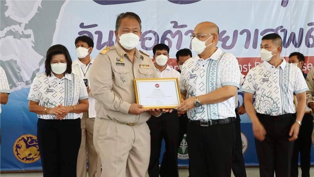วันที่ 27 มิถุนายน 2565 เวลา 8.30น. นายชัยชาญ สิทธิวิรัชธรรม ผู้ว่าราชการจังหวัดสิงห์บุรี เป็นประธานในพิธีอ่านสารเนื่องในวันต่อต้านยาเสพติดโลกแล้วนำกล่าวปฏิญาณตนประกาศเจตนารมณ์ต่อต้านยาเสพติด