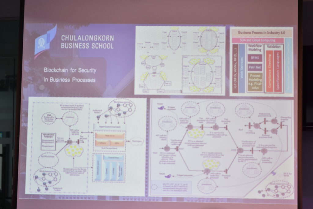 รองศาสตราจารย์ ดร.วธนน์ วิริยสิทธาวัฒน์ กล่าวว่า ในโลกยุคปัจจุบันที่การดำเนินงานต่างๆ มีการเปลี่ยนแปลงอย่างรวดเร็ว สร้างความท้าทายให้กับองค์กรในการพัฒนากระบวนการธุรกิจเพื่อรักษาความสามารถในการแข่งขัน และเพื่อส่งเสริมวิสัยทัศน์ Thailand 4.0 ตามนโยบายของรัฐบาล งานวิจัยนี้เป็นการศึกษาและประยุกต์ใช้เทคโนโลยี “บล็อกเชน (Blockchain) และ IoT” บล็อกเชน คือ เทคโนโลยีการประมวลผลและจัดเก็บข้อมูลแบบกระจายศูนย์ ซึ่งเป็นรูปแบบการบันทึกข้อมูลที่ใช้หลักการร่วมกับกลไกโดยข้อมูลที่ถูกบันทึกในระบบบล็อกเชนนั้น ไม่สามารถเปลี่ยนแก้ไขได้ ช่วยเพิ่มความถูกต้อง และความน่าเชื่อถือของข้อมูลมีความโปร่งใสเป็นเทคโนโลยีที่ทำให้สามารถสร้างระบบที่ไม่ต้องพึ่งพาตัวกลาง และ IoT หรือ Internet of Things การเชื่อมโยงของอุปกรณ์อัจฉริยะสามารถเชื่อมโยงหรือส่งข้อมูลถึงกันได้ด้วยอินเทอร์เน็ต โดยไม่ต้องป้อนข้อมูล สามารถสั่งการควบคุมการใช้งานอุปกรณ์อิเล็กทรอนิกส์ต่างๆ เพื่อสร้างนวัตกรรมใหม่ โดยมีเป้าหมายหลักคือพัฒนากระบวนการธุรกิจให้เป็นแบบอัตโนมัติ มีประสิทธิภาพ เพิ่มความน่าเชื่อถือ มีความปลอดภัย มีความเชื่อมโยงกันมากยิ่งขึ้น รวดเร็ว