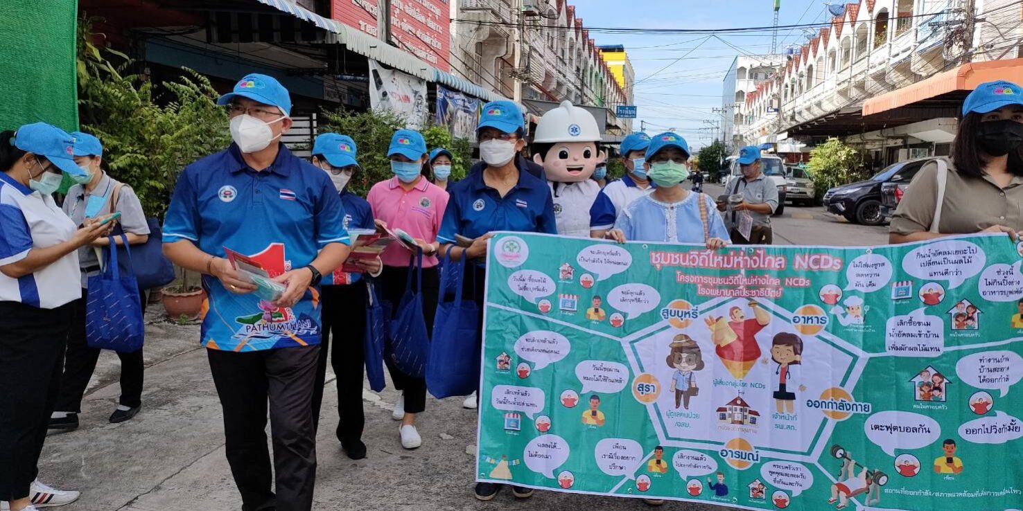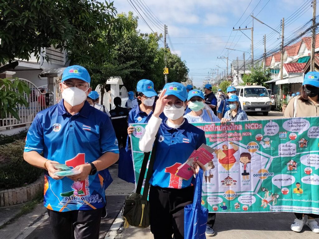 วันที่ 28 มิถุนายน 2565 ที่ชุมชนหมู่บ้านอยู่เจริญ ตำบลประชาธิปัตย์ อำเภอธัญบุรี จังหวัดปทุมธานี นายแพทย์รังสรรค์ บุตรชา ผู้อำนวยการโรงพยาบาลประชาธิปัตย์ ร่วมกับ นางสาวณัฐธิดา เกียรติพัฒนาชัย (สจ.หนึ่ง) รองประธานสภา อบจ.ปทุมธานี , สมาชิกสภา อบจ.เขต 3 อ.ธัญบุรี ร่วมนำคณะผู้บริหารและเจ้าหน้าที่ของโรงพยาบาลฯ เจ้าหน้าที่เทศบาลนครรังสิต อสม.หมู่บ้านในเขตชุมชน ร่วมกิจกรรมรณรงค์ชุมชนต้นแบบ ชุมชนวิถีใหม่ห่างไกลโรค NCDs หรือ non-communicable diseases กลุ่มโรคไม่ติดต่อเรื้อรัง ได้แก่ โรคเบาหวาน , โรคหลอดเลือดสมองและหัวใจ , โรคถุงลมโป่งพอง , โรคมะเร็ง , โรคความดันโลหิตสูง , โรคอ้วนลงพุง