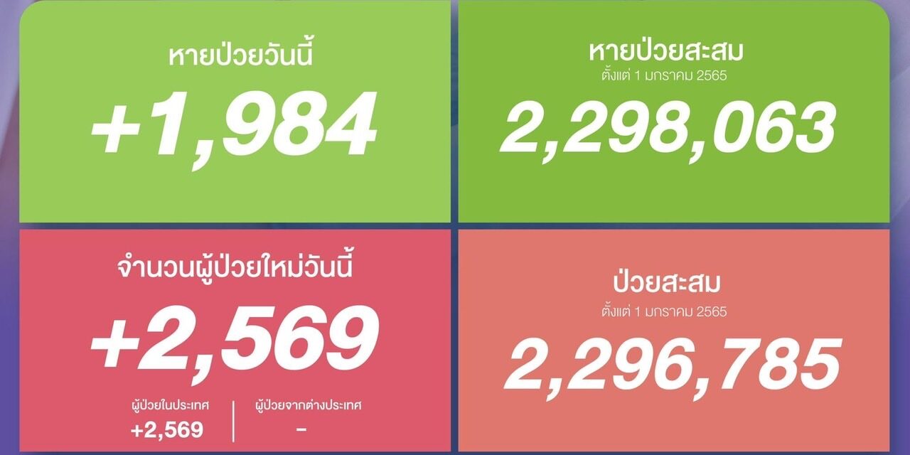หายป่วยสะสม 2,298,063 ราย (ตั้งแต่ 1 มกราคม 2565)