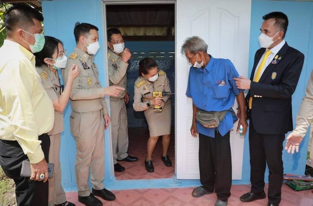 “กิจกรรมดีๆ ครั้งนี้ มีจุดเริ่มต้นจากการที่สำนักงาน กศน. ได้รับข้อมูลคนพิการจากกระทรวงการพัฒนาสังคมและความมั่นคงของมนุษย์ (พม.) ซึ่งมีผู้พิการอายุตั้งแต่ 18 ปีขึ้นไป ที่ยังไม่เข้าสู่ระบบการศึกษากว่า 40,000 คน จึงได้ดำเนินโครงการ กศน.ปักหมุด โดยลงพื้นที่ค้นหาและปักหมุดบ้านคนพิการ เพื่อสร้างโอกาสทางการศึกษา ช่วยเหลือด้านอาชีพ และการพัฒนาคุณภาพชีวิต ประกอบกับบริษัทในเครือบางกอกพีวีชี โดยคุณอมร ประกายศรีโรจน์ และครอบครัว ได้มอบบานประตูพีวีซี พร้อมอุปกรณ์ลูกบิดและบานพับ แก่กระทรวงศึกษาธิการ เพื่อส่งต่อให้กับครัวเรือนผู้ยากไร้และผู้ด้อยโอกาส ตามตามระบบ ThaiQM และ TPMAP ในพื้นที่อำเภอบ้านสร้าง รวมจำนวนทั้งสิ้น 149 บาน ได้แก่ ครัวเรือนที่ประสบความเดือดร้อน จำนวน 20 ครัวเรือน ผู้พิการโครงการ กศน.ปักหมุด จำนวน 11 ครัวเรือน วัด จำนวน 7 วัด และหน่วยงานราชการ สถานศึกษา จำนวน 10 แห่ง