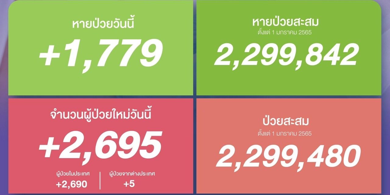 หายป่วยสะสม 2,299,842 ราย (ตั้งแต่ 1 มกราคม 2565)