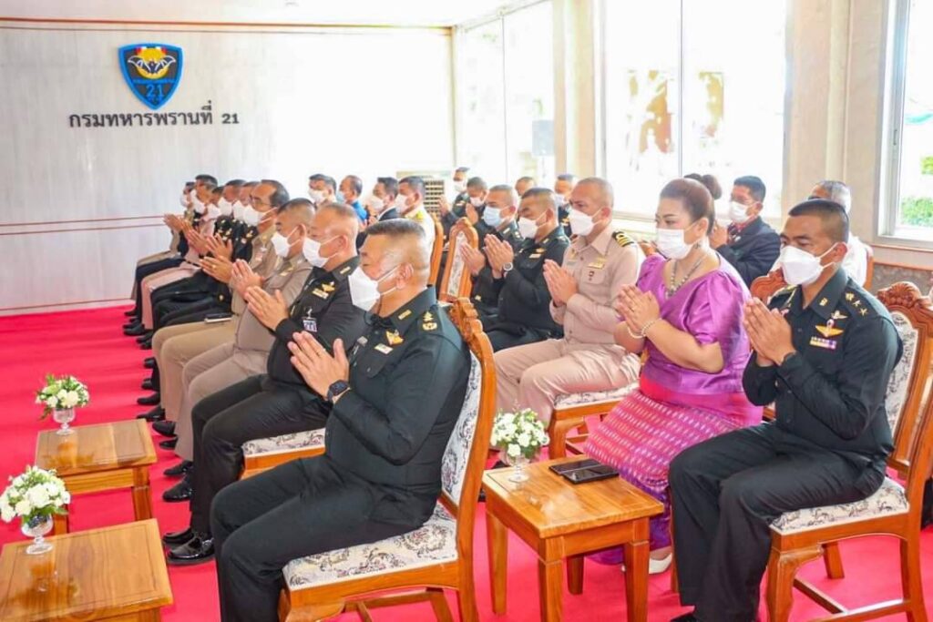 วันที่ 29 มิถุนายน 2565 เวลา 10.00 น. ผู้สื่อข่าวรายงานว่าที่กรมทหารพรานที่ 21 ค่ายศรีสองรัก ต.ศรีสองรัก อ.เมือง จ.เลย พลโท สวราชย์ แสงผล แม่ทัพภาคที่ 2 ได้นำคณะนายทหาร นายสิบ อาสาสมัครทหารพราน และชมรมแม่บ้านทหารบก สาขา กรมทหารพรานที่ 21 ประกอบพิธีบำเพ็ญกุศลเพื่อเป็นสิริมงคลแก่หน่วยหน่วยกรมทหารพรานที่ 21 และอุทิศส่วนกุศลให้กับข้าราชทหารผู้เสียสละ และพลีชีพเพื่อชาติ เนื่องในวันคล้ายวันสถาปนาหน่วย ครบรอบปีที่ 38 ซึ่งกรมทหารพรานที่ 21 ก่อตั้งมาตั้งแต่ตามคำสั่ง ทบ.(เฉพาะ)ที่ 22/27 ลง 19 ม.ค.2527 แปรสภาพ กรม อส.ทพ.2303 และ 2307 เป็นกรมทหารพรานที่ 21 ปีพุทธศักราช 2526 จนถึงปัจจุบัน ครบรอบปีที่ 38 ปี ซึ่งหน่วยได้ปฏิบัติงานมาอย่างเป็นรูปธรรมในการการปฏิบัติภารกิจป้องกันชายแดนสกัดกั้นการลักลอบนำสิ่งผิดกฎหมายเข้ามาในประเทศจนได้รับความไว้วางใจจากกองทัพบก และได้รับรางวัลชมเชย การปฏิบัติงานจากผู้บัญชาการทหารบก จากผลปฏิบัติงานดังกล่าว เกิดจากความมุ่งมั่น ทุ่มเท เสียสละของกำลังพลกรมทหารพรานที่ 21 โดยมีนายณรงค์ จีนอ่ำ รองผู้ว่าราชการจังหวัดเลย,พลตรี สุระ สินโสภา ผู้บัญชาการมณฑลทหารบกที่ 28, พันเอก ยงยุทธ ขันทวีพันเอก รองผู้บัญชาการกองพลทหารราบที่ 3, พันเอก ณรงค์ วิชญาณวรวุฒิ ผู้บังคับการกรมทหารราบที่ 8,พันเอก อุทัย นิลเนตร ผู้บังคับการกรมทหารพรานที่ 21/ผู้บังคับหน่วยเฉพาะกิจกรมทหารพรานที่ 21 และ พันโท ประดิษฐ์ พรมเรียน ผู้บังคับกองพันทหารราบที่ 1 กรมทหารราบที่ 8 อดีดผู้บังคับบัญชา,ผู้บังคับการตำรวจภูธรจังหวัดเลยและหัวหน้าส่วนราชการ หน่วยงานภาครัฐ ภาคเอกชน ในพื้นที่จังหวัดเลย และผู้มีเกียรติร่วมพิธี จากนั้นได้ตรวจเยี่ยมให้กำลังใจกำลังพลอาสาสมัครทหารพรานของหน่วยบางส่วนจะครบวาระเกษียณอายุราชการและใน 1 ตุลาคม 2565 นี้ กำลังพลบางส่วนจะครบวาระเกษียณอายุราชการ กลับไปดูแลครอบครัวหลังจากที่อยู่ปฏิบัติหน้าที่ให้กับกองทัพบกมาอย่างยาวนานแม่ทัพภาคที่ 2 ขอชมเชยที่ทุกนายมีความมุ่งมั่น ทุ่มเท เสียสละ อุทิศตน เพื่อชาติกองทัพบก และกองทัพภาคที่ 2 ด้วยดีตลอดมา