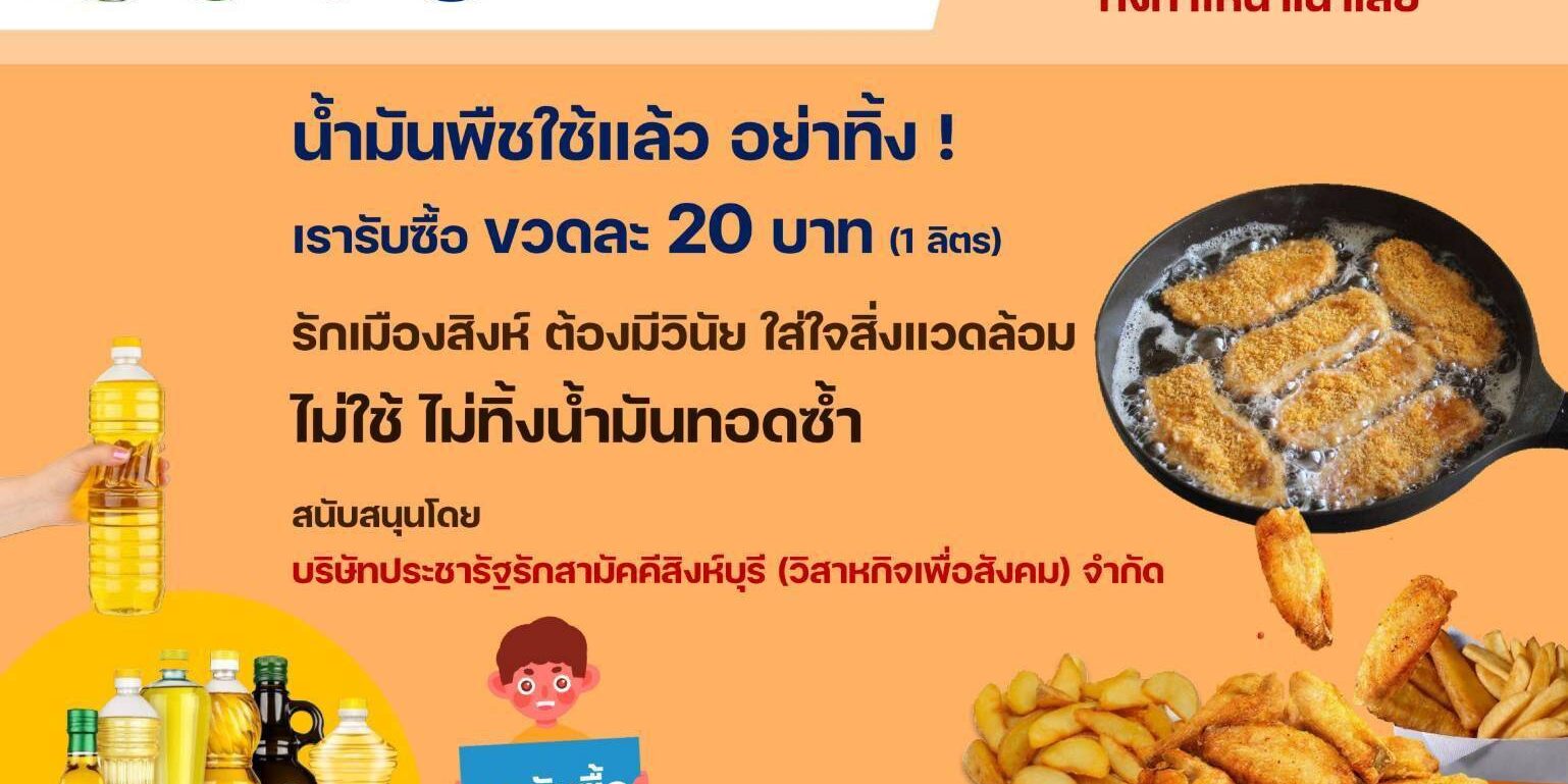 บ.ประชารัฐรักสามัคคีสิงห์บุรี (วิสาหกิจเพื่อสังคม) จำกัด โดยนายวิจิตร เลิศไพบูลย์วงศ์ ปธ. บริษัทประชารัฐฯ และ ประธานสภาอุตสาหกรรมจังหวัดสิงห์บุรีพร้อมทั้ง นางธนิสร แจ้งสนอง นักสื่อสารสิ่งแวดล้อมชุมชนจังหวัดสิงห์บุรี และ ประธานโอทอป เทรดเดอร์จังหวัดสิงห์บุรี ร่วมกับ สนง.ส่งเสริมการปกครองส่วนท้องถิ่นจังหวัดสิงห์บุรีและ สนง.ทรัพยากรธรรมชาติและสิ่งแวดล้อมจังหวัดสิงห์บุรี จัดโครงการดังกล่าว โดยเปิดรับซื้อน้ำมันที่ใช้แล้ว ทั้งน้ำมันจากพืช และสัตว์ โดยการกรองเศษอาหารหรือสิ่งเจือปนอื่นๆ อย่างน้อย 1ครั้ง ก่อนบรรจุลงภาชนะ..เช่น ใส่ขวดน้ำมันขวดเดิม หรือขวดน้ำดื่มที่ใช้แล้ว