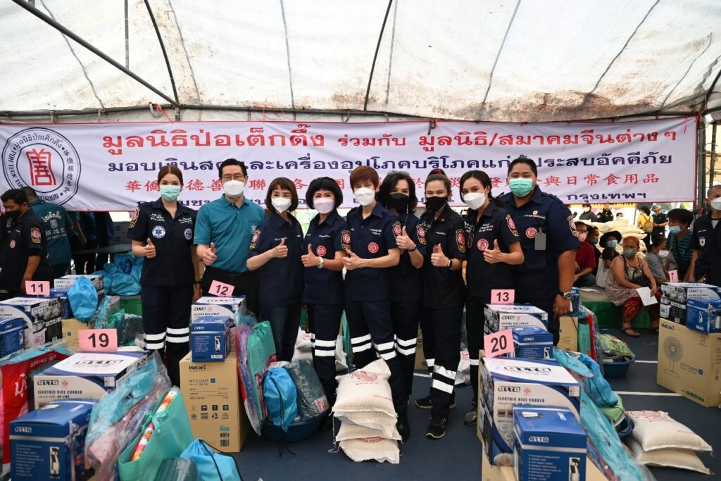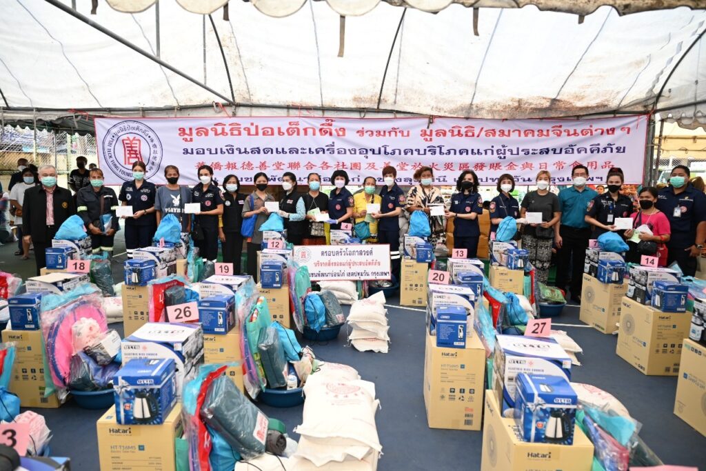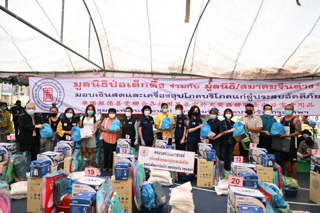 วันนี้ (วันที่ 30 มิถุนายน 2565 เวลา ระหว่างเวลา 09.00-14.00 น.) มูลนิธิป่อเต็กตึ๊ง โดยนายวิเชียร เตชะไพบูลย์ ประธานกรรมการมูลนิธิฯ ห่วงใยผู้ประสบอัคคีภัยบริเวณชุมชนบ่อนไก่ มอบหมายให้นางศิริกุล โอภาสวงศ์ กรรมการและเลขาธิการ พร้อมด้วย นายสุรพงศ์ เสรฐภักดี กรรมการและรองเหรัญญิก และนายนิพนธ์ ลีละศิธร กรรมการ นำทีมฝ่ายสังคมสงเคราะห์ ลงพื้นที่ให้ความช่วยเหลือ โดยมอบเงินสด คนละ 3,000 บาท จำนวน 500 คน พร้อมเครื่องใช้ไฟฟ้าและเครื่องอุปโภคบริโภคอื่นๆ อีกครอบครัวละ 1 ชุด ๆ ละ 2,000 บาท รวมงบประมาณไม่ต่ำกว่า 1.87 ล้านบาท โดยมี นางมาศวัลย์ ปิ่นสุวรรณ ผู้อำนวยการเขตปทุมวัน ร่วมในพิธี พร้อมด้วย มูลนิธิฯ / สมาคมจีนต่างๆ อาสาสมัครมูลนิธิป่อเต็กตึ๊ง นำโดย นางศิริวรรณ โอภาสวงศ์ และ นางศิริพร โอภาสวงศ์ อาสาสมัครกิตติมศักดิ์ นางสาวอัญชลี จงคดีกิจ (ปุ๊ อัญชลี) นางสาวพัชร์สิตา อธิอนันตศักดิ์ (เกรซ พัชร์สิตา) นางสาวบัณฑิตา ฐานวิเศษ (เมย์ บัณฑิตา) นางสาวไดอนา แอน คาฮิลล์ และ นางสาวกฤษณา แซ่โค้ว อาสาสมัครศิลปินมูลนิธิฯ ร่วมในพิธี ณ บริเวณศูนย์เยาวชนบ่อนไก่ ซอยปลูกจิต เขตปทุมวัน กรุงเทพฯ