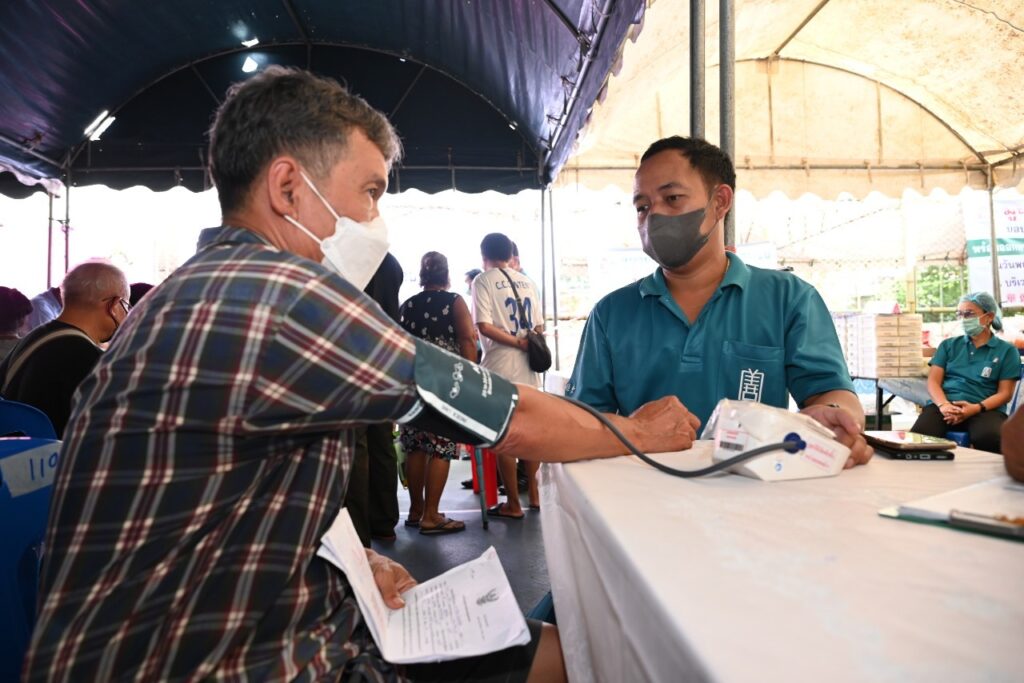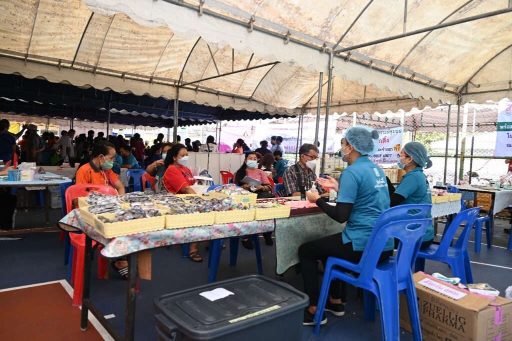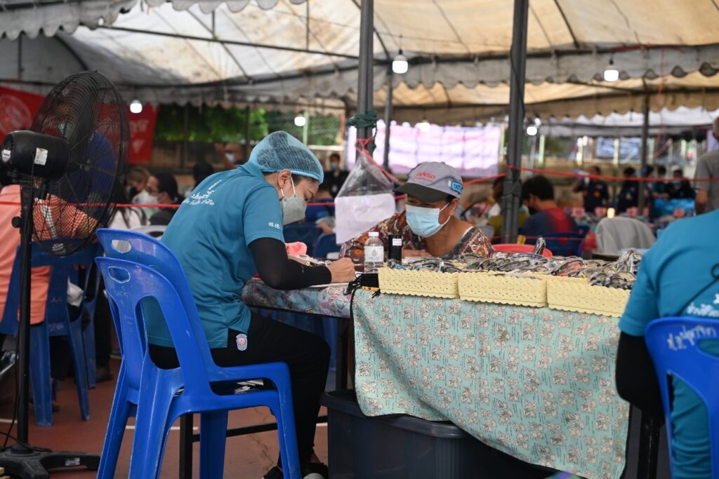 และในช่วงเช้าของวันเดียวกันนี้ (เวลา 09.00-12.00 น.) มูลนิธิป่อเต็กตึ๊ง โดย นางสาวเนาวรัตน์ วรรณศิริ หัวหน้าแผนกหน่วยแพทย์สงเคราะห์ชุมชน นำทีมแพทย์อาสา เจ้าหน้าที่ และอาสาสมัคร ลงพื้นที่ให้บริการประชาชนฟรี ประกอบด้วย บริการตรวจรักษาโรคทั่วไป จ่ายยา คัดกรองเบาหวาน (เบื้องต้น) และแจกแว่นสายตา โดยมีประชาชนชุมชนบ่อนไก่และพื้นที่ใกล้เคียงให้ความสนใจ และเข้ารับบริการเป็นจำนวนมาก นอกจากนี้มูลนิธิฯ ยังจัดจุดบริการอาหารและน้ำดื่ม แจกจ่ายอาหารกล่อง (มื้อกลางวัน) แก่ผู้ประสบอัคคีภัยและผู้ปฏิบัติงาน