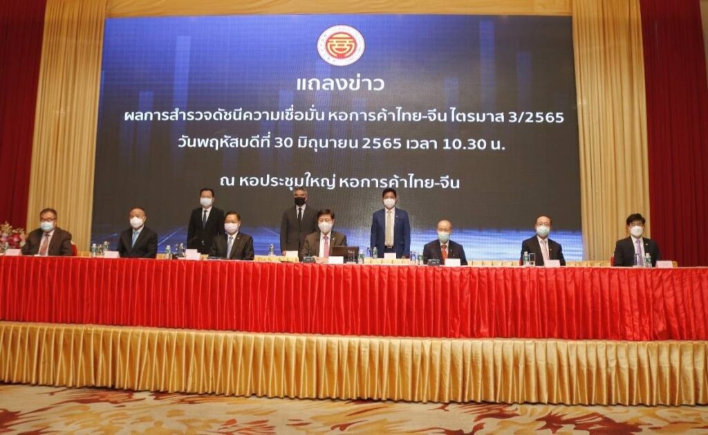 วันที่ 30 มิ.ย.65 เวลา 10.00 น.ณ หอประชุมใหญ่ หอการค้าไทย-จีน ชั้น 9 อาคาร ไทย ซี.ซี.ถนนสาทรใต้ : นายณรงค์ศักดิ์ พุทธพรมงคล ประธานกรรมการ หอการค้าไทย-จีน เปิดเผยว่า หอการค้าไทย-จีน และคณะเศรษฐศาสตร์ จุฬาลงกรณ์มหาวิทยาลัย ได้ทำการสำรวจดัชนีความเชื่อมั่น จากคณะกรรมการกิตติมศักดิ์ คณะกรรมการบริหาร และสมาชิกหอการค้าไทยจีน และประธาน ผู้บริหาร กรรมการสมาพันธ์หอการค้าไทยจีน และกลุ่มนักธุรกิจรุ่นใหม่หอการค้าไทยจีน จำนวน 325 คน ระหว่างวันที่ 16 ถึง 24 มิถุนายน 2565 เพื่อคาดการณ์ทิศทางเศรษฐกิจในไตรมาสที่ 3 ของปี 2565 ได้ดังนี้