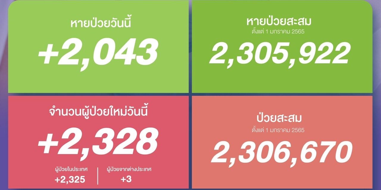 หายป่วยสะสม 2,305,922 ราย (ตั้งแต่ 1 มกราคม 2565)