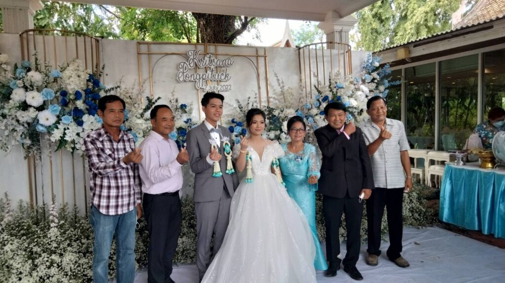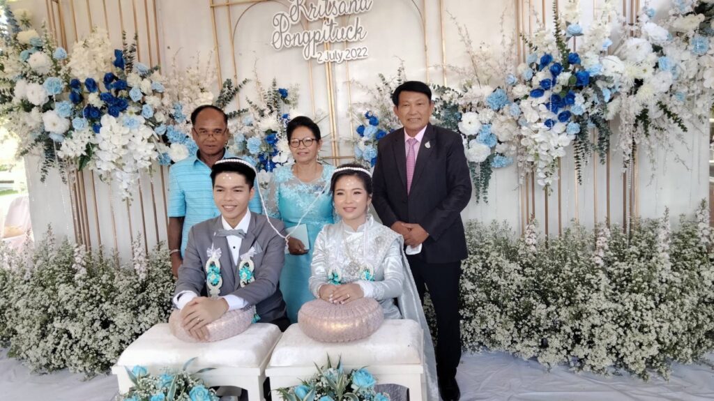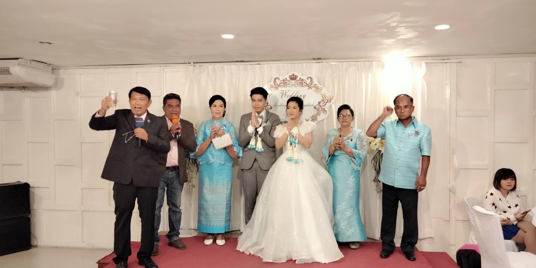 ร่วมงาน พิธีมงคลสมรส ระหว่าง นางสาวกฤษณา นุ่มชี(กุ้ง) และ นายพงษ์พิทักษ์ (แต้ม) บุตรสาว ของพี่ พยับและกุหลาบ นุ่มชี บุตรชายของ พี่ไพจิตร แก้วทวี