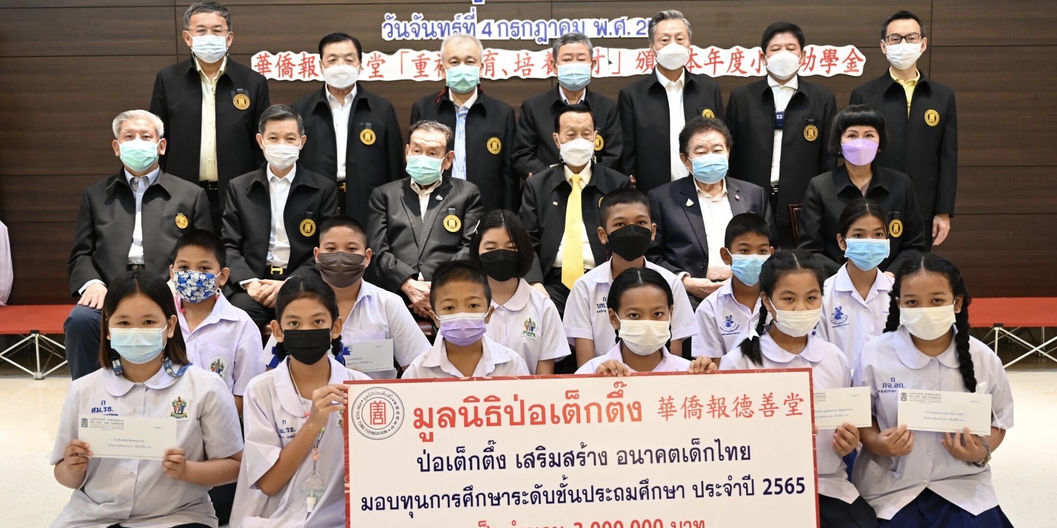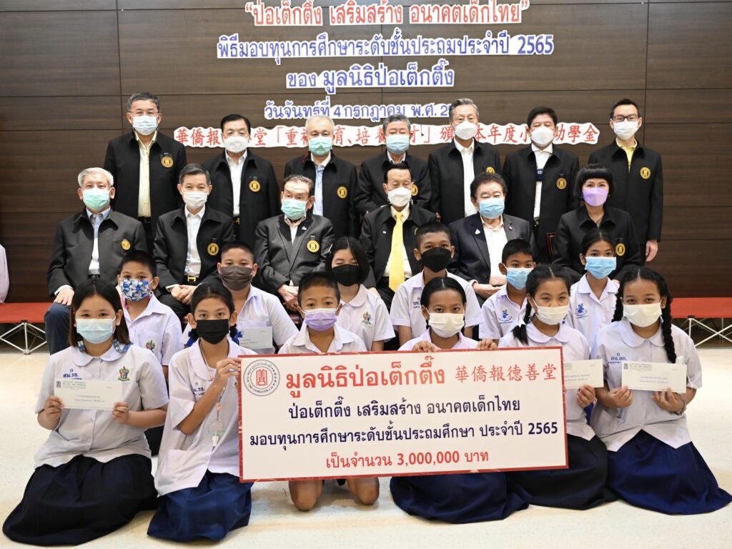 วันนี้ (วันที่ 4 กรกฎคม 2565 เวลา 10.00 น.) มูลนิธิป่อเต็กตึ๊ง โดย นายวิเชียร เตชะไพบูลย์ ประธานกรรมการ เป็นประธานในพิธี พร้อมด้วย ดร.สุทัศน์ เตชะวิบูลย์ รองประธานกรรมการ นายสัก กอแสงเรือง รองประธานกรรมการ นายวิชิต ชินวงศ์วรกุล รองประธานกรรมการ และคณะกรรมการมูลนิธิฯ ร่วมในพิธีมอบทุนการศึกษาแก่เยาวชนที่ประพฤติดีแต่ขาดแคลนทุนทรัพย์ในระดับชั้นประถมศึกษา ประจำปี 2565 จำนวน 1,500 ทุนๆ ละ 2,000 บาท เป็นจำนวนเงินทั้งสิ้น 3,000,000 บาท (สามล้านบาทถ้วน) เพื่อให้เยาวชนได้รับโอกาสทางการศึกษาอย่างเท่าเทียมโดยไม่ต้องละทิ้งหรือยุติการศึกษาลงเพราะขาดแคลนทุนทรัพย์ เติมเต็มความมุ่งหวังในชีวิต เติบโตพร้อมมีวิชาความรู้ สร้างอนาคตของตนเองและครอบครัว เป็นคนดีของสังคมและประเทศชาติ อีกทั้งยังเป็นการช่วยเหลือแบ่งเบาภาระของผู้ปกครอง โดยเฉพาะอย่างยิ่งในช่วงสถานการณ์การแพร่ระบาดของโควิด-19 โดยมีเยาวชน และผู้แทนจากสถาบันการศึกษา เป็นตัวแทนรับมอบ ณ ห้องประชุมชั้น 2 อาคาร 2 มูลนิธิป่อเต็กตึ๊ง พลับพลาไชย กรุงเทพฯ