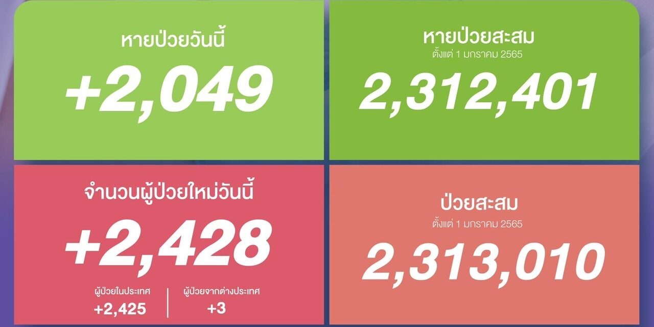หายป่วยสะสม 2,312,401 ราย (ตั้งแต่ 1 มกราคม 2565)