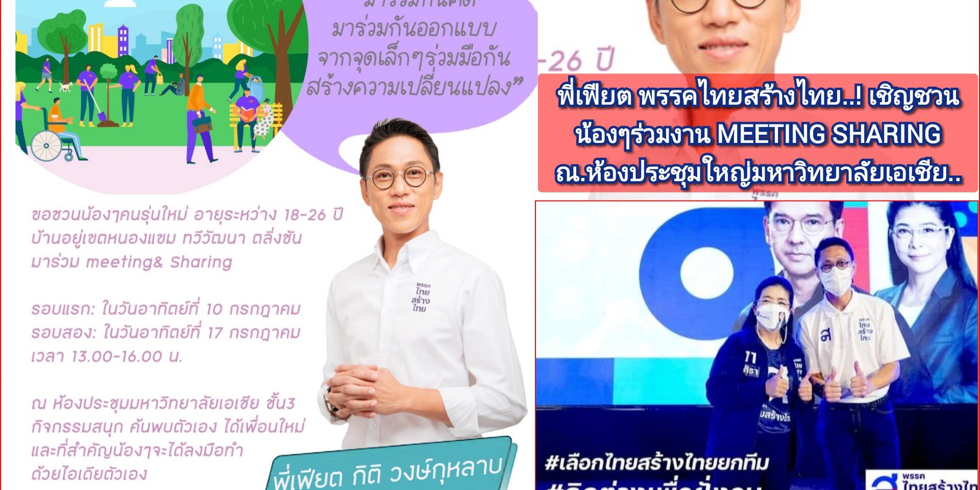 วันนี้ (6ก.ค.65) คุณกิติ วงษ์กุหลาบ (พี่เฟียต) พรรคไทยสร้างไทย เเจ้งประชาสัมพันธ์ขอเชิญชวนน้องๆรุ่นใหม่ อายุ 18-26 ปี อยู่ในพื้นที่ หนองเเขม ทวีวัฒนา ตลิ่งชัน ร่วมงานในกิจกรรม หัวข้อ meeting sharing ร่วมกันคิด ร่วมกันออกแบบ ในไอเดียใหม่ๆ จากน้องๆ เพื่อสร้างความเปลี่ยนแปลง และ ลงมือทำในแนวคิดไอเดียตัวเอง ในวันอาทิตย์ที่ 10 กรกฎาคม 2565 และ วันอาทิตย์ที่ 17 กรกฎาคม 2565 ตั้งแต่ เวลา 13:00-16:00 น. ณ.ห้องประชุมใหญ่ชั้น3 มหาวิทยาลัยเอเชีย เขตหนองแขม กทม.