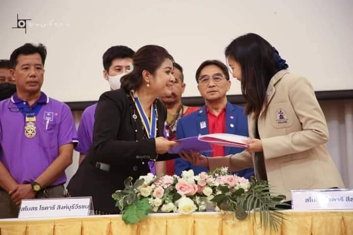 วันที่ 7 ก.ค. 65 คุณอรพรรณ รักถนอม เข้ารับตำแหน่งนายกสโมสรโรตารีสิงห์บุรีวีรชน ปี 2565-2566 โดยจัดการประชุมเคาะฆ้องครั้งแรก ณ ห้องจุฑามาศ ภัตตาคารไพบูลย์ไก่ย่างสิงห์บุรี มีนายชัยชาญ สิทธิวิรัชธรรม ผู้ว่าราชการจังหวัดสิงห์บุรี พร้อมนางจิตติวรรณ สิทธิวิรัชธรรม นายกเหล่ากาชาด จ.สิงห์บุรี นายสัมฤทธิ์ กองเงิน และนายสมชายลีหล้าน้อย รองผู้ว่าราชการจังหวัดสิงห์บุรี นางจิราภรณ์ กองเงิน รองนายกเหล่ากาชาดฯ พันเอกชายธนัญชา วาจรัต รอง ผอ.กอร.มน.จ.สิงห์บุรี นายวิจิตร เลิศไพบูลย์วงษ์ ประธานสภาอุตสาหกรรม จ.สิงห์บุรี สมาชิกโรตารี่สิงห์บุรีวีรชน สื่อมวลชน และองค์กรภาคีต่างๆ มาร่วมแสดงความยินดี รับฟังการแสดงวิสัยทัศน์ ตามแนวทางการช่วยเหลือสังคมของโรตารีสากล ที่จะจัดทำโครงการช่วยเหลือในจังหวัดสิงห์บุรี