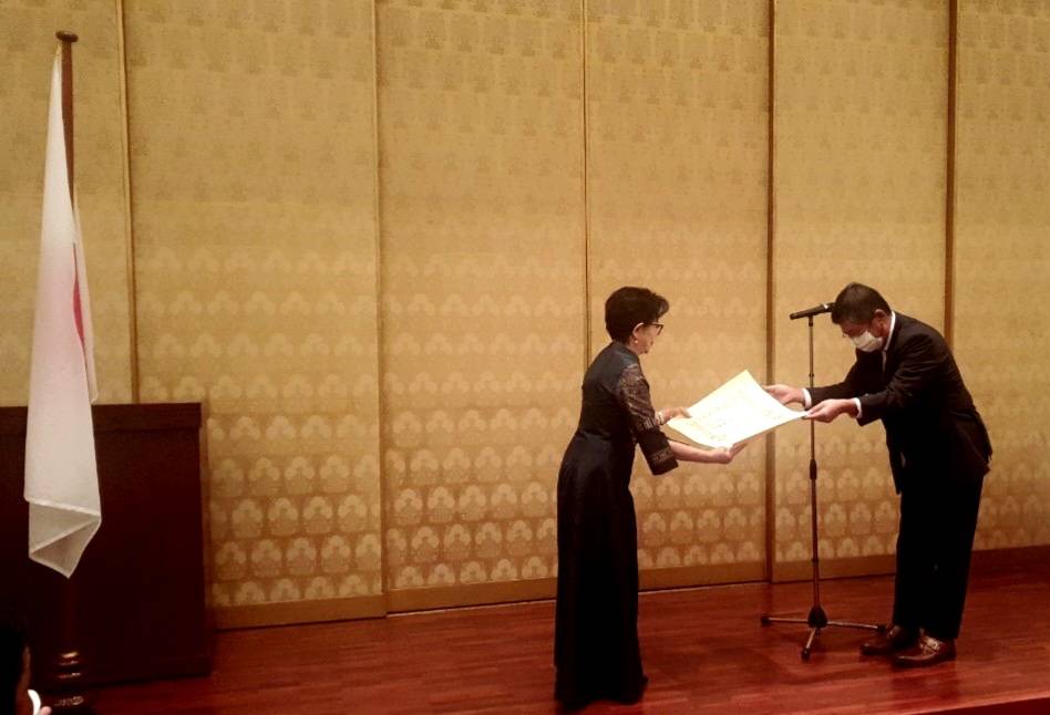 เมื่อวันที่ 6 กรกฏาคม 2565 เวลา 18.00 น.ณ ทำเนียบสถานเอกอัครราชทูตญี่ปุ่น โดยรัฐบาลญี่ปุ่นได้ประกาศมอบเครื่องราชอิสริยาภรณ์ ประจำฤดูใบไม้ผลิ พ.ศ.2565 ให้แก่ชาวต่างประเทศผู้มีผลงานที่โดดเด่นในสาขาต่างๆ ซึ่งในพื้นที่ที่อยู่ในความรับผิดชอบของสถานกงสุลใหญ่ญี่ปุ่นฯ นั้น มีชาวไทยที่ได้รับมอบเครื่องราชอิสริยาภรณ์ในครั้งนี้ 1 ท่านคือ อาจารย์ ประทีป อึ้งทรงธรรม ฮาตะ ได้รับเครื่องราชอิสริยาภรณ์ “The Order of the Rising Sun,Gold Rays with Neck Ribbon” ในฐานะเป็นผู้มีบทบาทสำคัญในการให้การศึกษาและส่งเสริมความสัมพันธ์อันดีระหว่างประเทศไทยและประเทศญี่ปุ่น