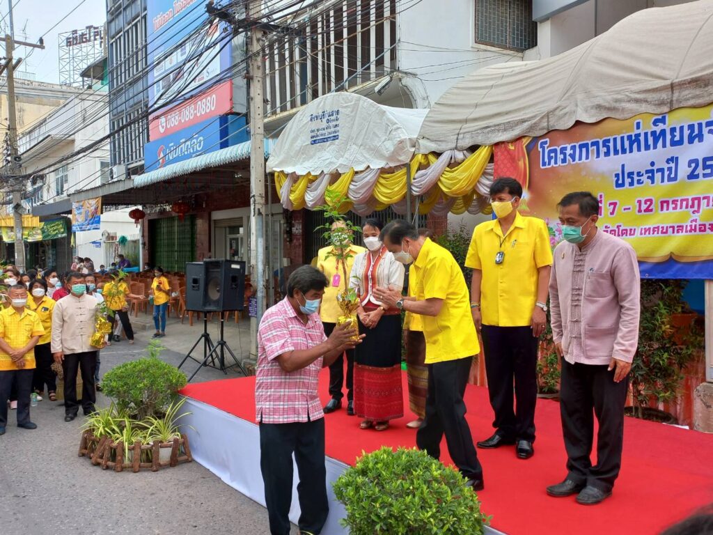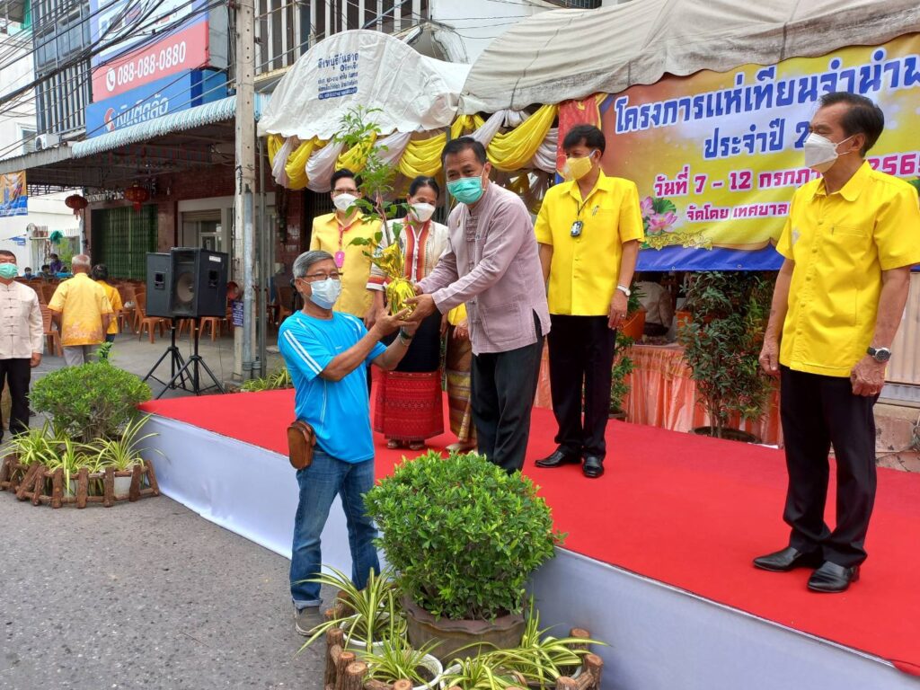 ทั้งนี้มีการมอบต้นทองอุไร ให้กับชุมชน 14 ชุมชน เพื่อเพิ่มพื้นที่สีเขียวในชุมชนในทุกๆปีที่มีการจัดหล่อเทียนจำนำพรรษา โดยวันที่12 ก.ค. 65 จะมีขบวนแห่เทียนจากชุมชนทั้ง 14 ชุมชน ขบวนจากนักเรียนในสังกัดเทศบาล เดินแห่กันบริเวณห้างหุ้นส่วนจำกัดเกรียงศักดิ์พาณิชย์ (ปั๊มเซลล์เก่า) ไปจนถึงวัดโพธิ์แก้วนพคุณ โดยแต่ละชุมชนจะแยกย้ายไปถวายเทียนและผ้าป่าให้กับวัดในเขตเทศบาล 9 วัดด้วยกัน
