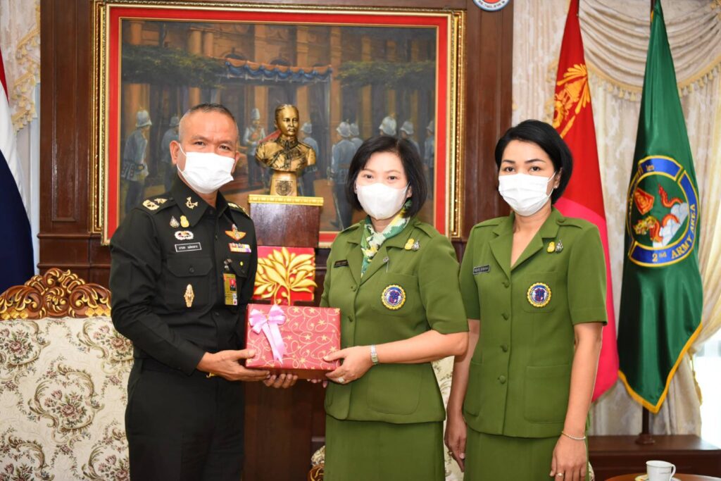 เมื่อวันที่ 4 ก.ค.65 เวลา 09.00 น. พล.ต.มานพ แฝดกลาง. ผทค.ทบ./ผอ.ศปปค.ฝกพ.ศปก.ทบ. และคณะฯ เดินทางไปติดตามความก้าวหน้าโครงการประกอบอาชีพเสริมฯ ตาม ม.35 หน่วย ทภ.2 (นครราชสีมา,บุรีรัมย์,สุรินทร์,ศรีสะเกษ,ร้อยเอ็ดและขอนแก่น) ห้วงวันที่ 4-8 ก.ค.65 โดยได้เข้าเยี่ยมคำนับ พล.ต. อดุลย์ บุญธรรมเจริญ รอง มทภ.2 พร้อมด้วยคุณสุกัญญา แสงผล ปธ.สม.ทบ.สาขา ทภ.2 ณ ห้องรับรอง ทภ.2 พร้อมรับฟังการบรรยายสรุปผลการดำเนินการของ ศปปค.นขต.ทภ.2 ประกอบด้วย บก.ทภ.2,พล.ร.3,พลพัฒนา 2,ทน.2,บชร.2,มทบ.21 และ กรม ทพ.26 และผลการดำเนินการโครงการประกอบอาชีพเสริมฯ จำนวน 89 โครงการ และได้ เยี่ยมชมความก้าวหน้าของการจัดตั้ง ศปปค.ทภ.2 ตามนโยบาย ผบ.ทบ.และติดตามการดำเนินโครงการตามมาตรา 35 (3) ของคนพิการ จำนวน 4 โครงการ โดยมีผู้แทนสมาคมแม่บ้านทหารบก ร่วมตรวจเยี่ยม ณ บก.ทภ.2 ดังนี้