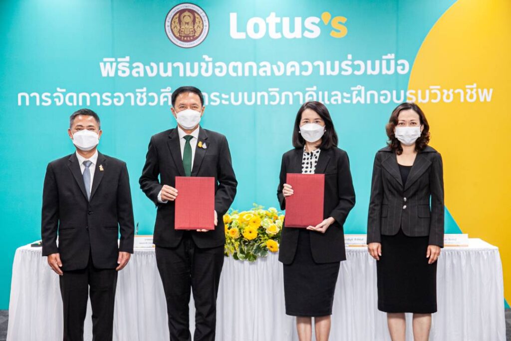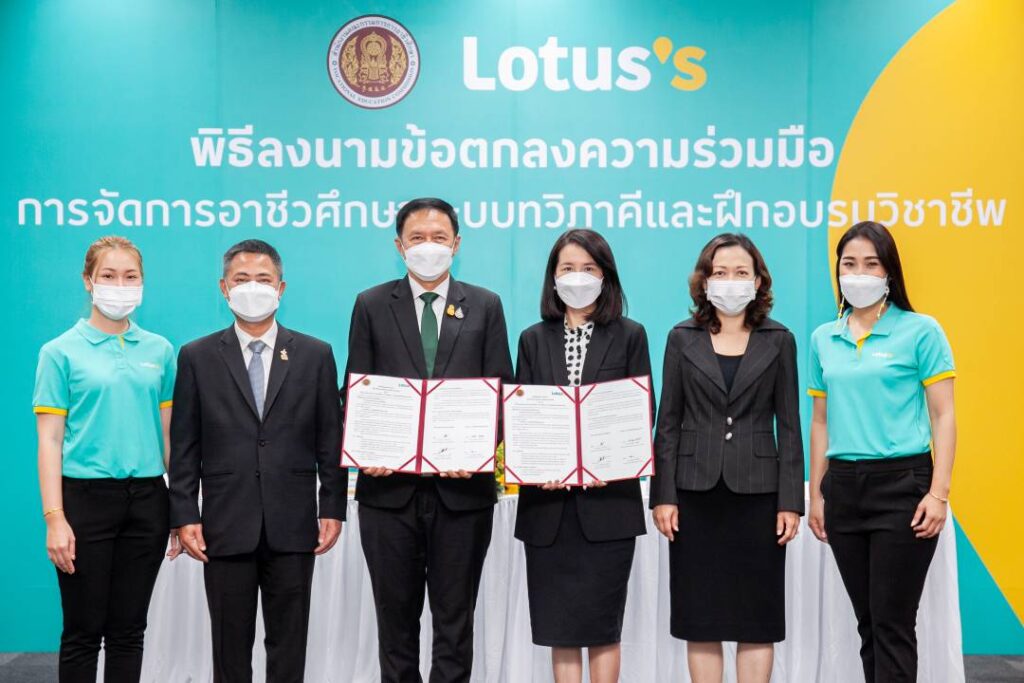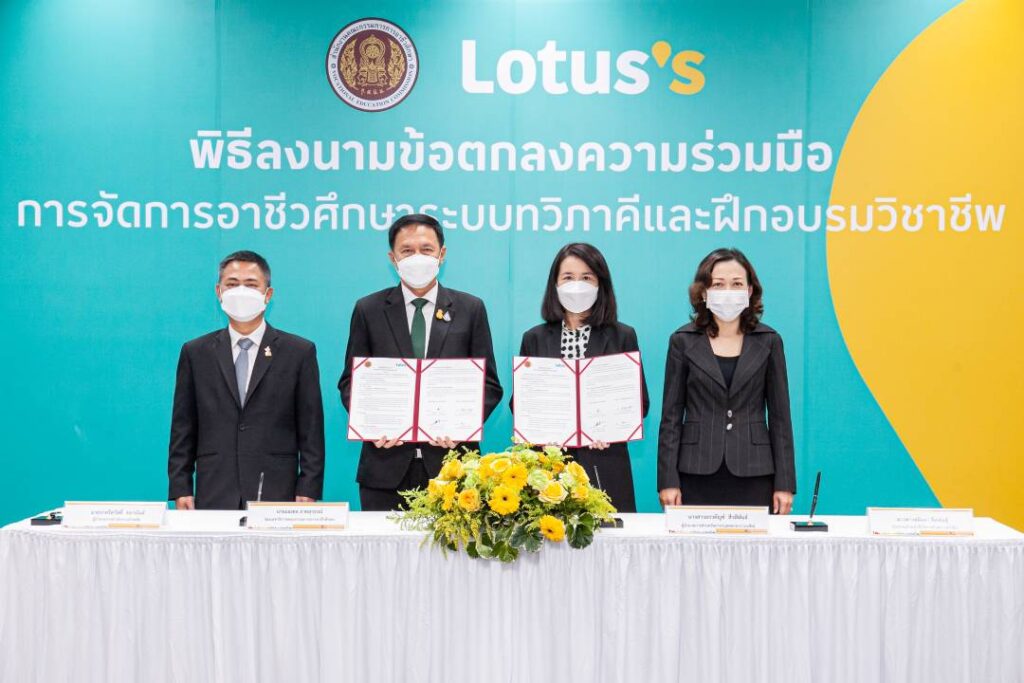 โลตัส ผนึก สำนักงานคณะกรรมการการอาชีวศึกษา (สอศ.) ลงนามบันทึกข้อตกลงความร่วมมือ (MOU) การจัดการอาชีวศึกษาระบบทวิภาคีและการฝึกอบรมวิชาชีพ เพื่อเพิ่มทักษะการทำงานจริงและส่งเสริมการจ้างงานให้แก่นักเรียนนักศึกษาในสังกัดสำนักงานการอาชีวศึกษา ผ่านเครือข่ายของโลตัสทั่วประเทศที่ปัจจุบันมีการจ้างงานรวมกว่า 55,000 ตำแหน่ง เพื่อประสานความร่วมมือระหว่างภาครัฐและเอกชนพัฒนาบุคลากรให้มีคุณภาพและมาตรฐาน เพิ่มขีดความสามารถให้สอดคล้องกับการพัฒนาเศรษฐกิจและสังคมของประเทศในอนาคต