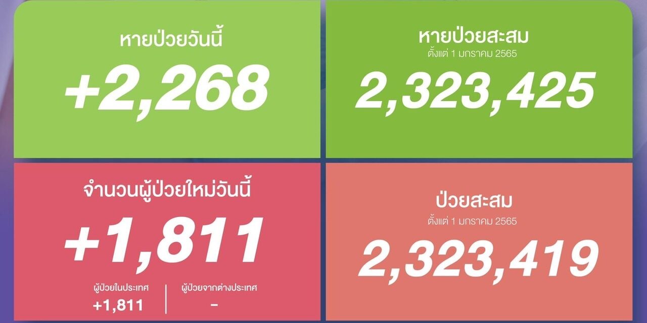 หายป่วยสะสม 2,323,425 ราย (ตั้งแต่ 1 มกราคม 2565)