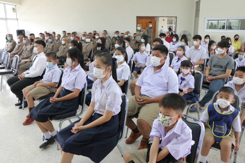 โดยมี พ.ต.อ.นิวัติ พิพัฒนศิริ รอง ผบก.ภ.จ.นครสวรรค์ พร้อมด้วย ดร.กัลย์ชพร รอดบำรุง สจ.นครสวรรค์ รวมทั้ง พ.ต.อ.พีระศักดิ์ สุทธิสวรรค์ ผู้กำกับการสถานีตำรวจภูธรชุมแสง พร้อมข้าราชการตำรวจสถานีตำรวจภูธรชุมแสง นักเรียนนักศึกษา บุตรข้าราชการตำรวจ ร่วมให้การต้อนรับ และร่วมพิธีรับมอบ
