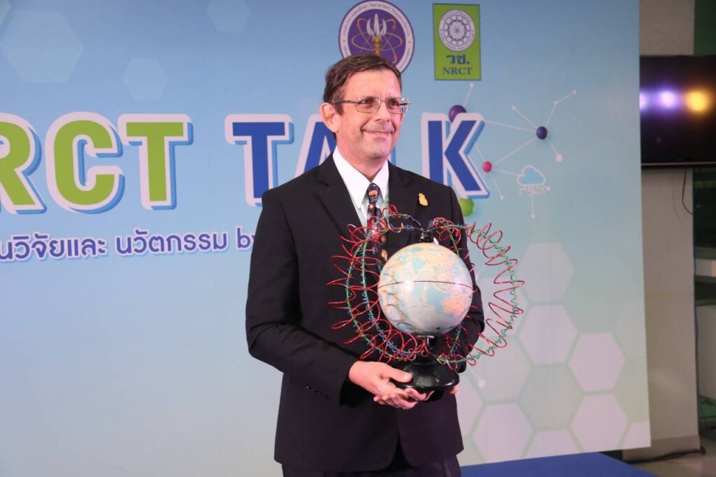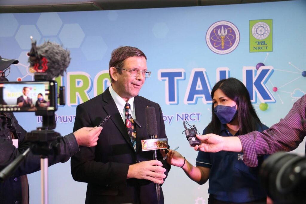 วันที่ 12 ก.ค.65 เวลา 11.30 น. : สำนักงานการวิจัยแห่งชาติ (วช.) กระทรวงการอุดมศึกษา วิทยาศาสตร์ วิจัยและนวัตกรรม (อว.) จัดแถลงข่าว “NRCT Talk : นักวิจัยดีเด่นแห่งชาติ ประจำปี 2565 ครั้งที่ 9” เปิดตัวศาสตราจารย์ พิเศษ ดร.เดวิด จอห์น รูฟโฟโล นักวิจัยดีเด่นแห่งชาติ ประจำปี 2565 สาขาวิทยาศาสตร์กายภาพและคณิตศาสตร์ โดยในครั้งนี้ ดร.วิภารัตน์ ดีอ่อง ผู้อำนวยการสำนักงานการวิจัยแห่งชาติ (วช.) มอบหมายให้ นายเอนก บำรุงกิจ ผู้อำนวยการกองระบบและบริหารข้อมูลเชิงยุทธศาสตร์ด้านวิทยาศาสตร์ วิจัยและนวัตกรรม เป็นประธานการแถลงข่าวฯ ณ ศูนย์จัดการความรู้การวิจัย สำนักงานการวิจัยแห่งชาติ