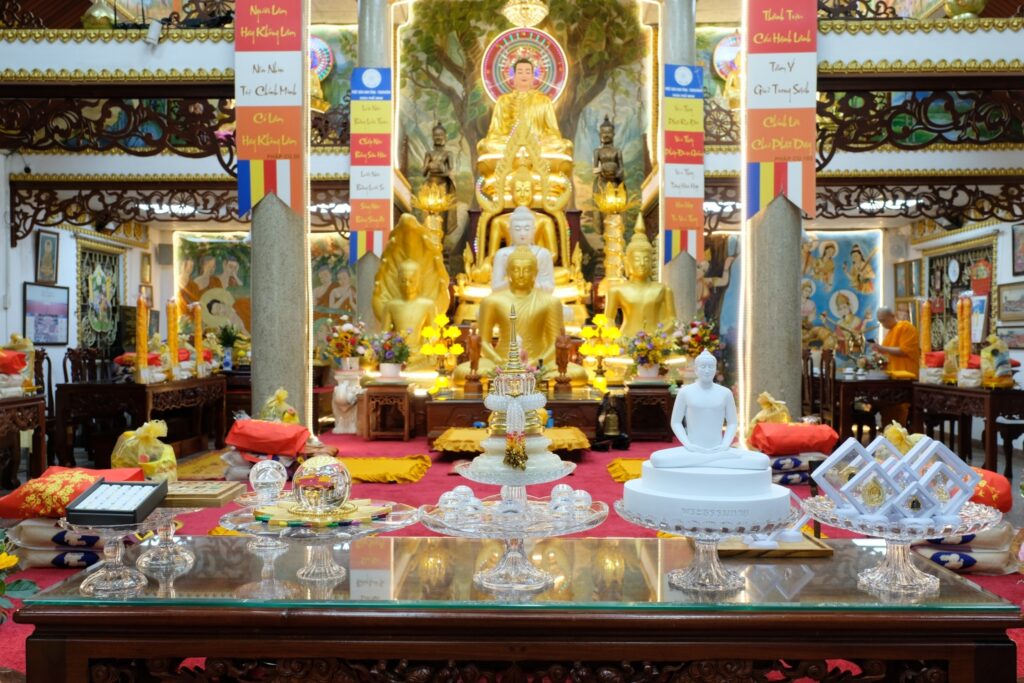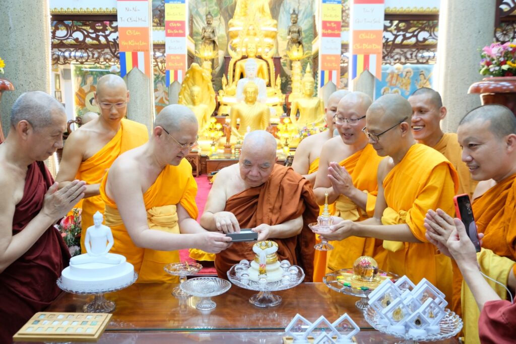 วันที่ 11 กรกฎาคม 2565 พระวิเทศธรรมาภรณ์ ประธานมูลนิธิธรรมกาย นำคณะสงฆ์และศิษยานุศิษย์วัดพระธรรมกาย จังหวัดปทุมธานี เดินทางไปประกอบพิธีถวายเทียนพรรษา จตุปัจจัยไทยธรรมและอัญเชิญพระบรมสารีริกธาตุเพื่อประดิษฐาน ณ วัดโฝ่มินห์ (Pho Minh) หรือ วัดวิชชาวัฒนาวิหาร เขตก่อวัป นครโฮจิมินห์ ประเทศเวียดนาม