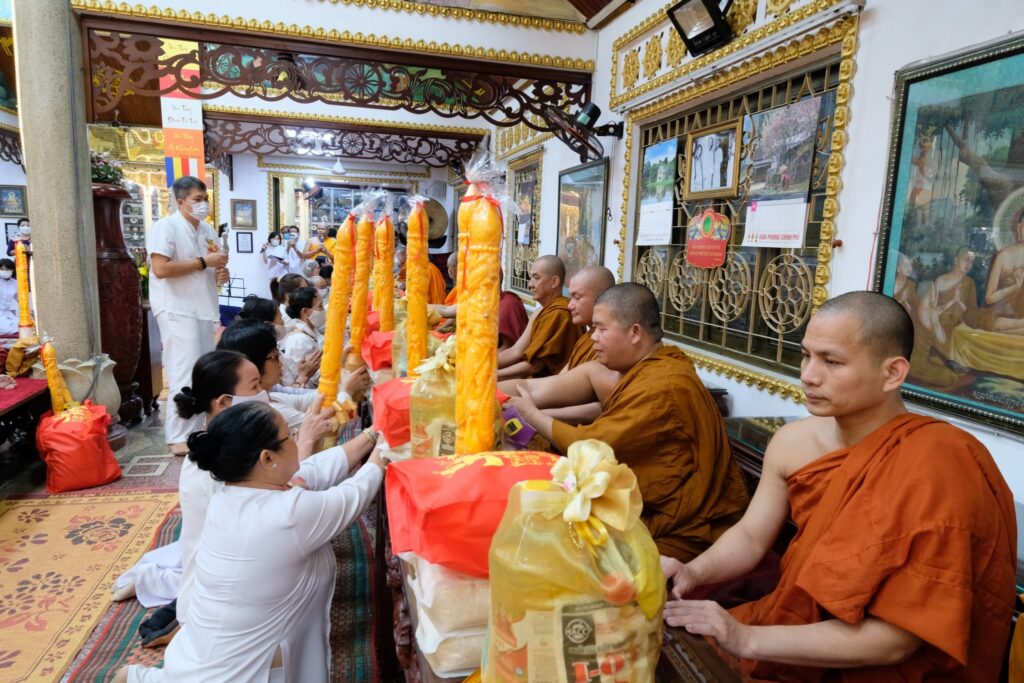 วัดโฝ่มินห์ (Pho Minh) ในประเทศเวียดนาม เป็นวัดพุทธฝ่ายเถรวาท โดยได้รับความเมตตาจาก พระเถราจารย์ ทิก เถี่ยน เติม (กุสลจิตฺโต) รองประธานคณะกรรมการบริหารพุทธสมาคมแห่งชาติเวียดนาม เจ้าอาวาสวัดโฝ่มินห์ เป็นประธานฝ่ายสงฆ์ และได้กราบอาราธนาพระเถรานุเถระชั้นผู้ใหญ่ อาทิ เจ้าอาวาสและพระเถระจาก วัดกี่เวียน (วัดเชตวัน) วัดเฟื๊อก หาย วัดเถี่ยน เลิม วัดเหวียน ถวี๋ วัดบู๋กวางและวัดเถรวาทอื่นๆ ในนครโฮจิมินห์และจังหวัดใกล้เคียง เข้ารับถวายเทียนพรรษาและไทยธรรมในครั้งนี้กว่า 30 วัด ซึ่งได้รับเกียรติจากพุทธศาสนิกชนผู้มีจิตศรัทธา ทั้งชาวไทยและเวียดนาม ร่วมเป็นเจ้าภาพเป็นจำนวนมาก ท่ามกลางบรรยากาศพุทธประเพณีที่สงบ เรียบง่ายและศักดิ์สิทธิ์