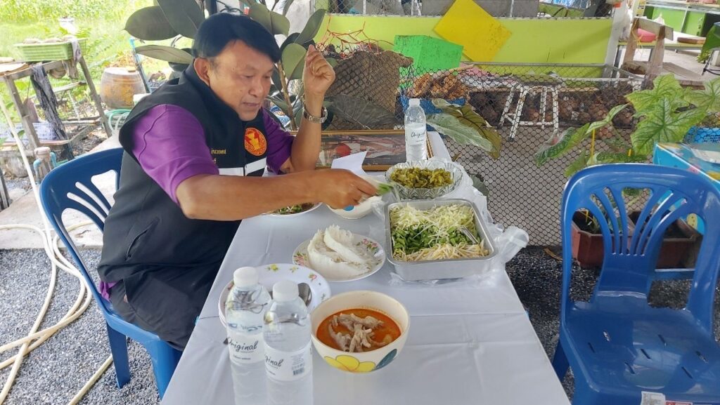 “ร้านขนมจีนน้ำยา ข้าวราดแกง” และร่วมรับประทานอาหารกับลูกค้าที่สัญจร ไปมา