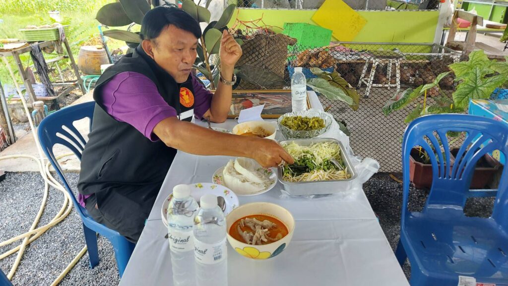 ลูกค้าตกใจว่า ท่านสมาชิกสภาผู้แทนราษฎร ตักขนมจีนน้ำยาสืบถึงโต๊ะลูกค้าเลยทีเดียวเป็นกันเองจริงๆนะ ลูกค้าบอกมาว่าท่านสมาชิกสภาผู้ราษฎร ติดดิน