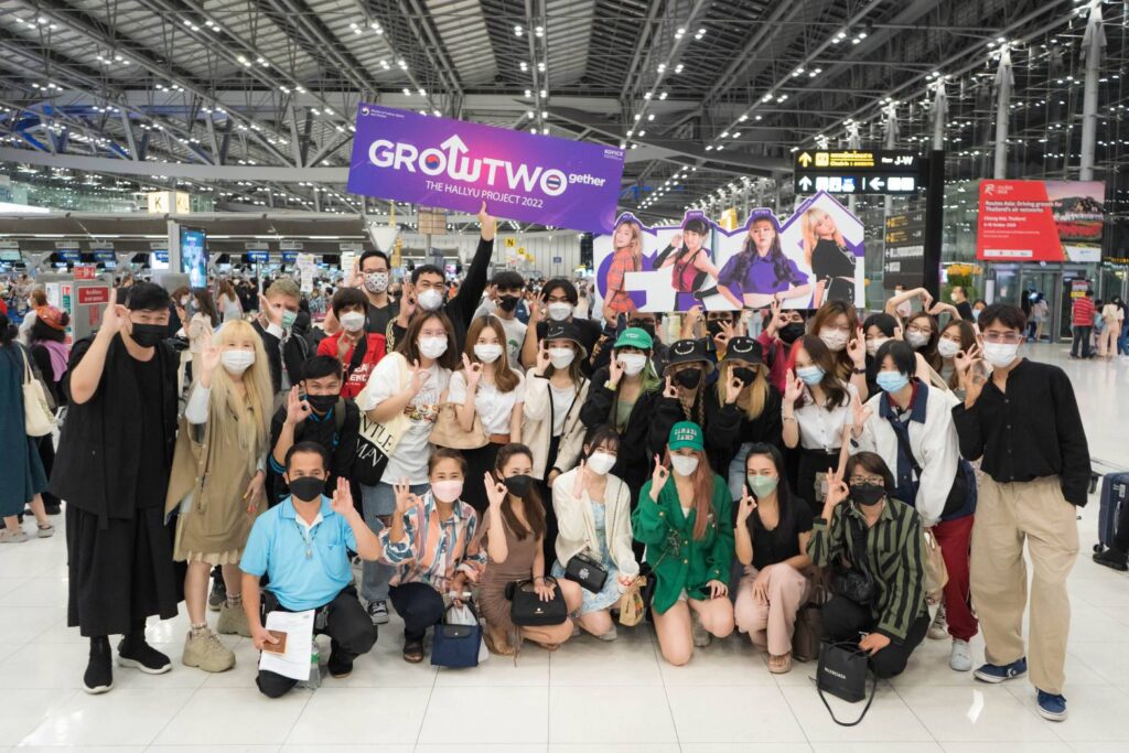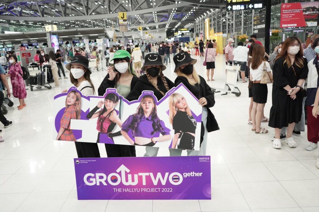 ได้ฤกษ์เดินทางบินลัดฟ้าสู่ประเทศเกาหลีใต้แล้ว สำหรับ 4 สาว ได้แก่ เฌอมายด์-กิตติกา ชละเอม, ครีม-สิตานัน อินต๊ะปวน, มุนินท์ แสงสินทรัพย์ 3 สาวตัวแทนจากวง BERRY BERRY และ ไอล่า-อมลวรรณ เหล่าเจริญ ตัวแทนจากวง ROSE QUARTZ ที่มีโอกาสเข้าร่วม Hallyu Project Grow together 2022 ซึ่งเป็นโครงการ การสนับสนุนความร่วมมือในการแลกเปลี่ยนวัฒนธรรมระหว่างประเทศและส่งเสริมทรัพยากรมนุษย์ โดยผู้เข้าร่วมโครงการจะได้เข้ารับการฝึกอบรมในแบบศิลปินไอดอลเกาหลี เป็นเวลา 3 เดือน ที่ประเทศเกาหลีใต้ เพื่อฝึกและพัฒนาทั้งทางด้านการร้องเพลง การเต้น การออกกำลังกาย ตลอดจนพัฒนาบุคลิกภาพ โดย Trainer เกาหลีที่มีประสบการณ์โดยตรงในแต่ละด้าน