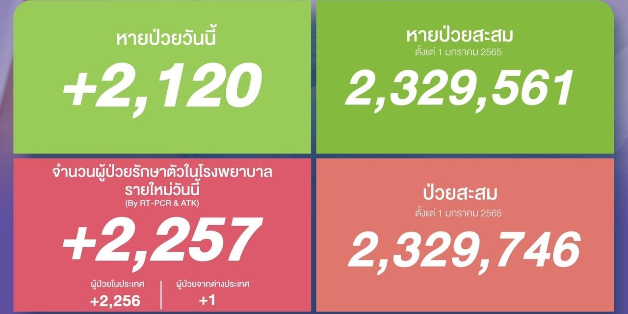 หายป่วยสะสม 2,329,561 ราย (ตั้งแต่ 1 มกราคม 2565)
