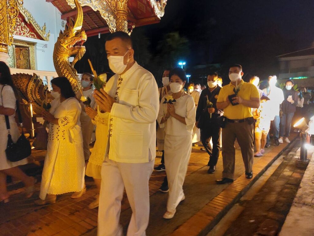 พล.ต.ท.ปิยะ ต๊ะวิชัย ผบช.ภ.5 พร้อมด้วย คุณพิยดา ต๊ะวิชัย ประธานชมรมแม่บ้านตำรวจภูธรภาค5 ร่วมพิธีเวียนเทียน เนื่องในเทศกาลวันอาสาฬหบูชาและวันเข้าพรรษา ประจำปี2565 โดยมีนายวรญาณ บุญณราช รองผู้ว่าราชการจังหวัดเชียงใหม่ เป็นประธานในพิธี ณ วัดพระสิงห์วรมหาวิหาร อ.เมือง จว.เชียงใหม่