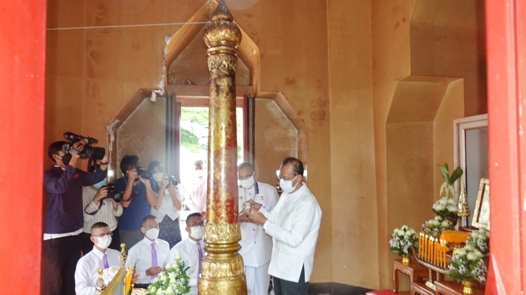 วันที่ 13 กรกฎาคม 2565 ที่ศาลหลักเมือง ศาลากลางจังหวัดปทุมธานี ตำบลบางปรอก อำเภอเมือง จังหวัดปทุมธานี นายณรงค์ศักดิ์ โอสถธนากร ผู้ว่าราชการจังหวัดปทุมธานี เป็นประธานพิธีเจริญพระพุทธมนต์และบวงสรวงบูรณะซ่อมแซมศาลหลักเมืองปทุมธานี โดยมี พล.ต.ท.คำรณวิทย์ ธูปกระจ่าง นายกองค์การบริหารส่วนจังหวัดปทุมธานี นางสาวฐิต์ณัฐ สมบัติศิริ วัฒนธรรมจังหวัดปทุมธานี หัวหน้าส่วนราชการ ข้าราชการ นายอำเภอทั้ง 7 อำเภอ เจ้าหน้าที่และประชาชน เข้าร่วมพิธี