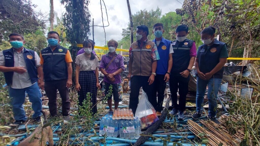 เพื่อให้กำลังใจ และมอบเงินช่วยเหลือ ถุงยังชีพ เครื่องอุปโภค-บริโภค ข้าวสารอาหารแห้ง น้ำดื่ม และไข่ไก่