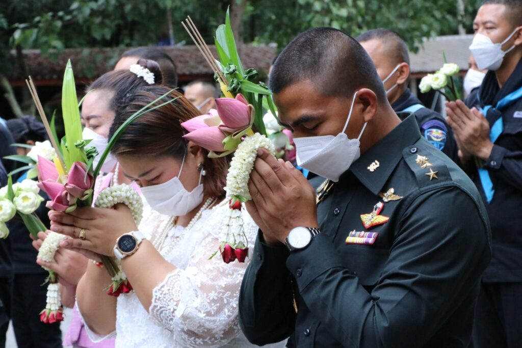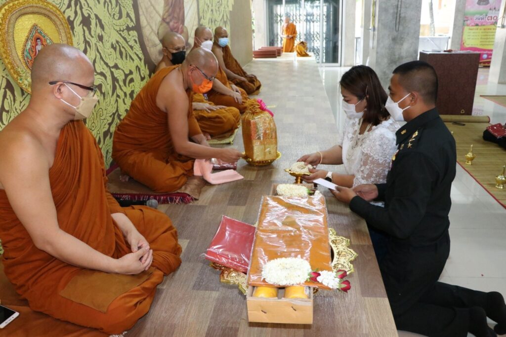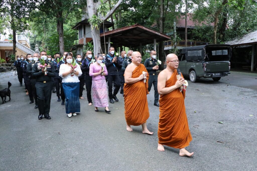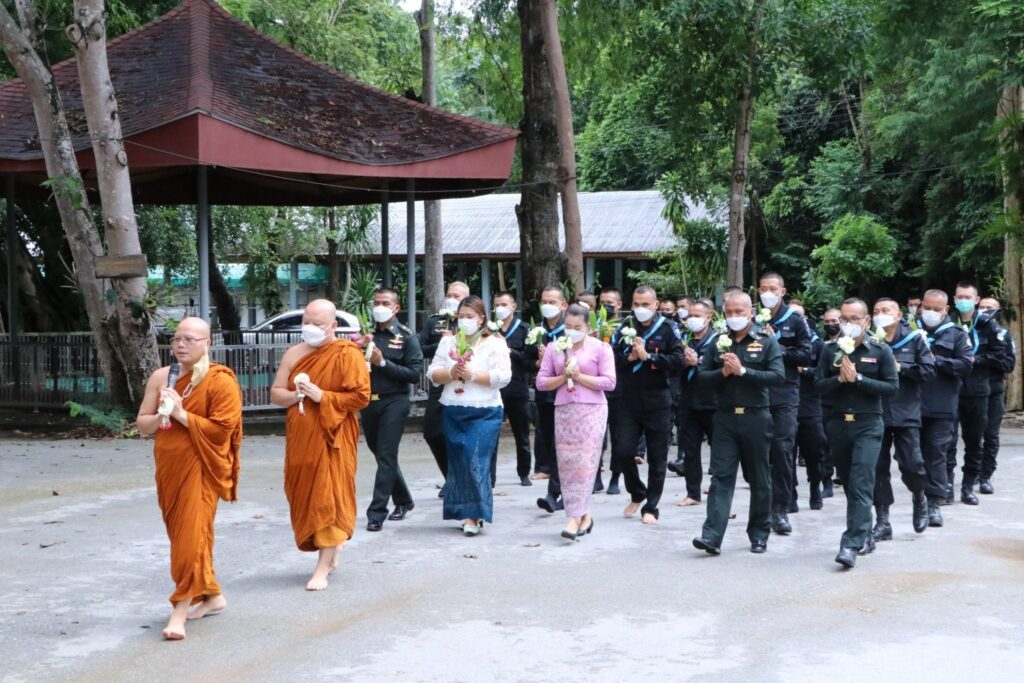 วันที่ 13 ก.ค.65 เวลา 10.00 น. กองกำลังสุรศักดิ์มนตรี โดย พ.อ.อุทัย นิลเนตร ผบ.กรม ทพ.21/ผบ.ฉก.ทพ.21 พร้อมด้วย คุณสิริกัญญา นิลเนตร ประธาน สม.ทบ. สาขา กรม ทพ.21 นำคณะกำลังพลนายทหาร นายสิบ อาสาสมัครทหารพราน และพุทธศาสนิกชน ร่วมพิธีถวายเทียนพรรษา ถวายเป็นพุทธบูชาและสืบสานประเพณีและวัฒนธรรมอันดีงาม เนื่องในวันอาสาฬหบูชาและวันเข้าพรรษา ประจำปี 2565 และพิธีเวียนเทียนเนื่องในวันอาสาฬหบูชา 15 ค่ำ เดือน 8 ณ วัดศรีอภัยวัน อ.เมือง จ.เลย ประวัติวันอาสาฬหบูชา เป็นวันหยุดราชการไทย หนึ่งในวันสำคัญของศาสนาพุทธ เป็นวันที่พระพุทธเจ้าทรงแสดงพระธรรมเทศนาเป็นครั้งแรก แก่ปัญจวัคคีย์ เรียกว่า “ธัมมจักกัปปวัตตนสูตร” วันอาสาฬหบูชาตรงกับวันเพ็ญเดือน 8 และถือเป็นวันที่มีพระรัตนตรัยครบบริบูรณ์ คือ พระพุทธ พระธรรม และพระสงฆ์ ธัมมจักกัปปวัตนสูตร ถือเป็น เทศนากัณฑ์แรกที่พระสัมมาสัมพุทธเจ้าทรงแสดงเทศนาแก่ปัญจวัคคีย์ โดยมี 5 ท่านคือ โกณฑัญญะ วัปปะ ภัททิยะ มหานามะและอัสสชิ เป็นนักบวชที่ออกบวช เพื่อติดตามปรนนิบัติพระพุทธเจ้า ในวันขึ้น 15 ค่ำ เดือน 8 พระพุทธเจ้าได้ทรงแสดงปฐมเทศนา ซึ่งโกณฑัญญะ เป็นคนแรกที่ได้ดวงตาเห็นธรรม บรรลุโสดาบัน ได้บวชเป็นพระภิกษุสงฆ์องค์แรกในพระพุทธศาสนา