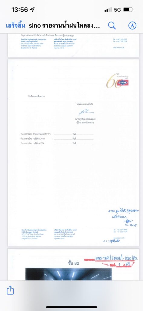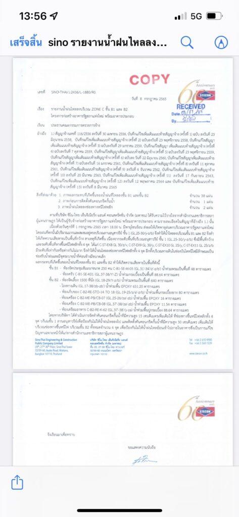 ล่าสุด นายวัชระ กล่าวว่าได้รับเอกสารจากสภาฯ ซึ่งเป็นหนังสือของบริษัท ซิโน-ไทย เอ็นจีเนียริ่ง แอนด์ คอนสตรัคชั่น จำกัด (มหาชน) เลขที่ SINO-THAI/J.2436/L-1880/R0. ลงวันที่ 8 ก.ค. 65 เรื่อง รายงานน้ำฝนไหลลงบริเวณโซน C ชั้น B1-B2 มีรายละเอียดดังนี้