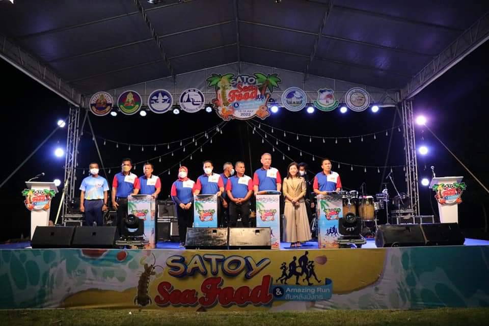 ที่ลานอเนกประสงค์ บ้านตันหยงโป อำเภอเมือง จังหวัดสตูล นายเอกรัฐ หลีเส็น ผู้ว่าราชการจังหวัดสตูล เป็นประธานเปิดงาน Satoy Saefood & Amazing Run สันหลังมังกร ซึ่งจัดขึ้นระหว่างวันที่ 13-15 กรกฎาคม 2565 โดยมีนายสัมฤทธิ์ เลียงประสิทธิ์ นายกอบจ.สตูล กล่าวต้อนรับ และนายภาณุ วรมิตร ผอ.ททท.สำนักงานสตูล กล่าววัตถุประสงค์การจัดงานฯ พร้อมด้วยนายพิบูลย์ รัชกิจประการ ส.ส.สตูล เขต 1 นาวาตรีหญิงโนสมา หลีเส็น นายกเหล่ากาชาดจังหวัดสตูล และหัวหน้าส่วนราชการ ร่วมเป็นเกียรติภายในงานฯ โดยภายหลังเสร็จสิ้นพิธีเปิด ผู้ว่าราชการจังหวัดสตูล และหัวหน้าส่วนราชการ ได้เดินเยี่ยมชมและให้กำลังใจพ่อค้าแม่ค้าภายในงานอีกด้วย