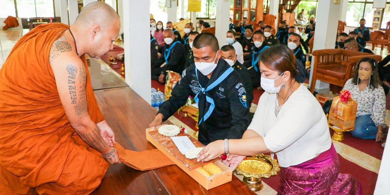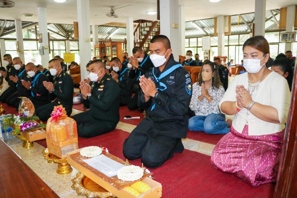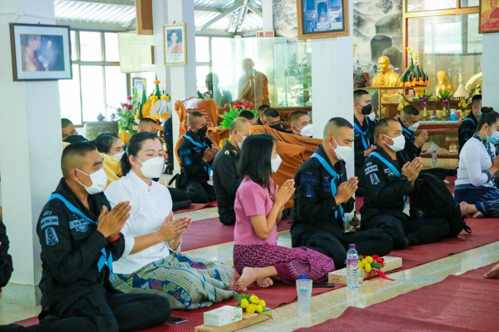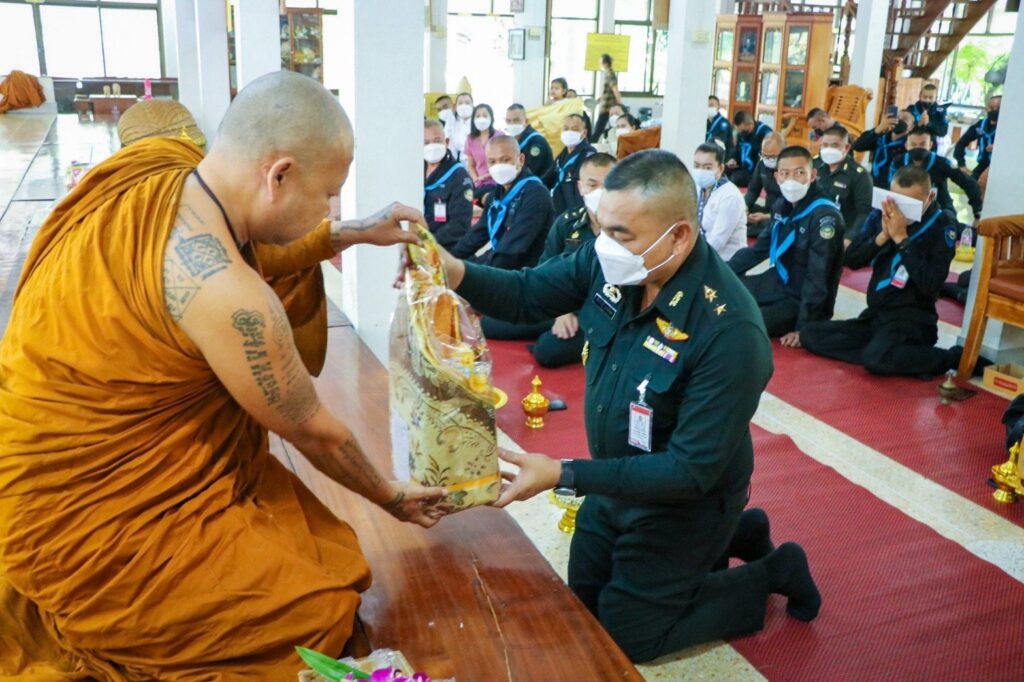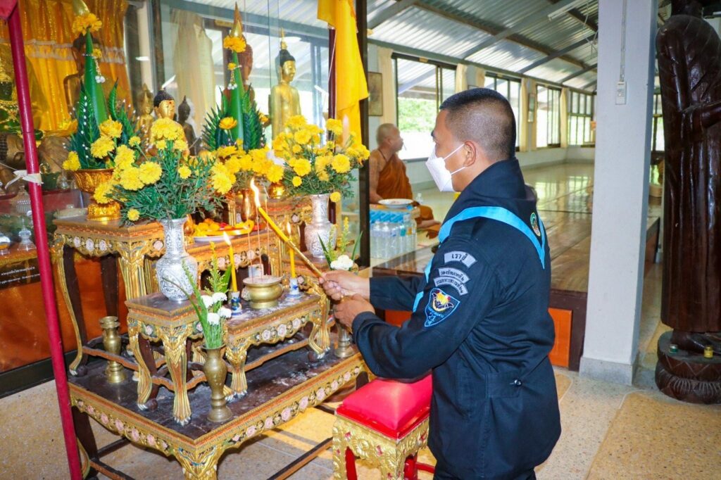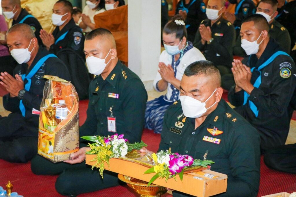 วันที่ 14 ก.ค.65 เวลา 09.45 น. กองกำลังสุรศักดิ์มนตรี โดย พ.อ.อุทัย นิลเนตร ผบ.กรม ทพ.21/ผบ.ฉก.ทพ.21 พร้อมด้วย คุณสิริกัญญา นิลเนตร ประธาน สม.ทบ. สาขา กรม ทพ.21 และพ.ท.ประดิษฐ์ พรมเรียน ผบ.ร.8 พัน.1 นำคณะกำลังพลนายทหาร นายสิบ อาสาสมัครทหารพราน และพุทธศาสนิกชน ร่วมพิธีถวายเทียนพรรษา ถวายเป็นพุทธบูชาและสืบสานประเพณีและวัฒนธรรมอันดีงาม เนื่องในวันอาสาฬหบูชาและวันเข้าพรรษา ประจำปี 2565 วันเข้าพรรษา แรม 1 ค่ำ เดือน 8 เป็นวันที่พระภิกษุจะอธิษฐานว่าจะพักประจำอยู่ ณ ที่ใดที่หนึ่ง ตลอดระยะเวลาฤดูฝนที่มีกำหนดระยะเวลา 3 เดือน ตามที่พระวินัยบัญญัติไว้ โดยไม่ไปค้างแรมที่อื่น หรือภาษาปากว่า “จำพรรษา”