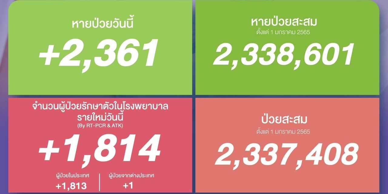 หายป่วยสะสม 2,338,601 ราย (ตั้งแต่ 1 มกราคม 2565)