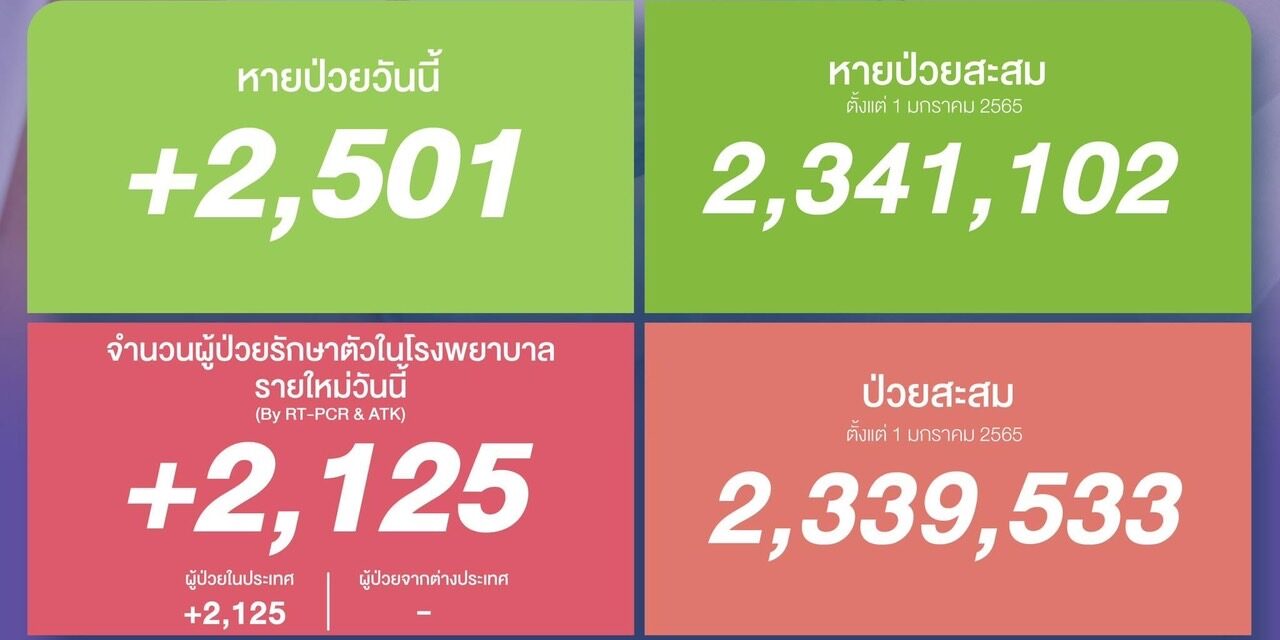 หายป่วยสะสม 2,341,102 ราย (ตั้งแต่ 1 มกราคม 2565)