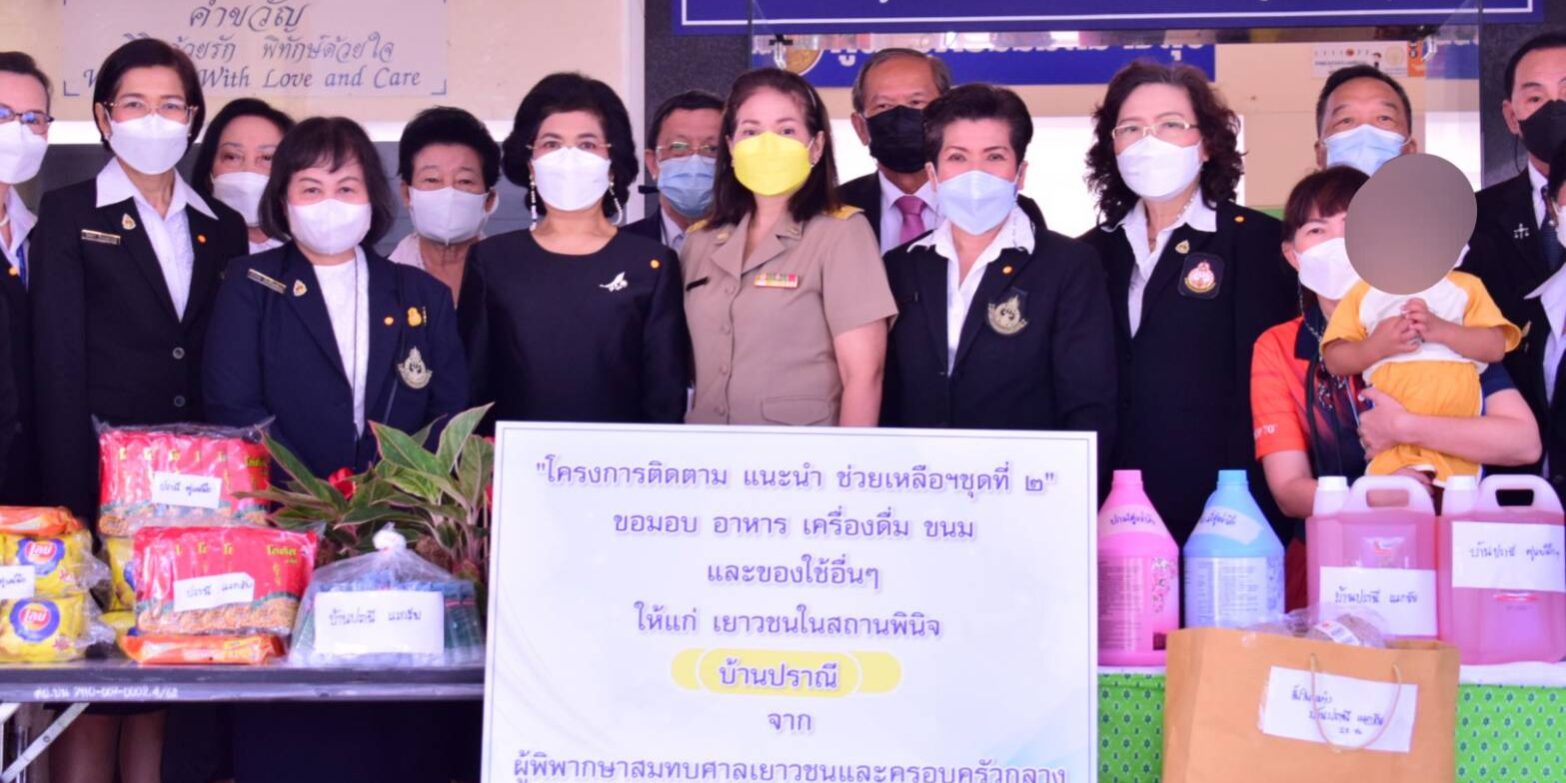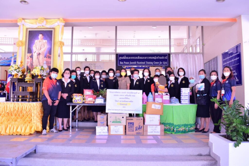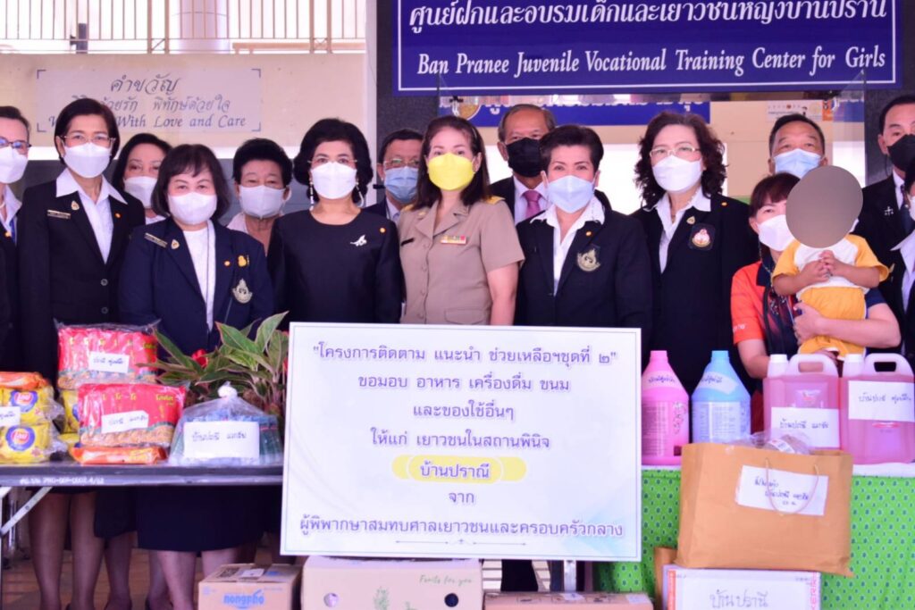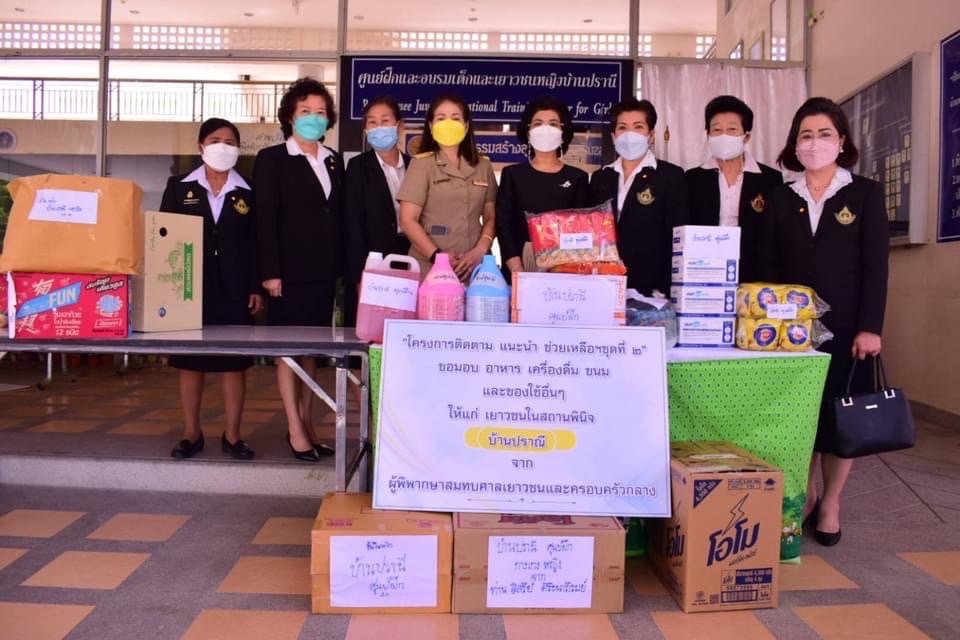 ในการนี้ได้นำเครื่องกรองน้ำ ชุดชั้นในชายเเละหญิง อาหารของว่างเครื่องดื่มหน้ากากอนามัยและแอลกอฮอล์ไปมอบให้คณะเจ้าหน้าที่และเยาวชนในสถานพินิจและศูนย์ฝึกและอบรมเด็กและเยาวชนทั้งสองแห่งด้วย