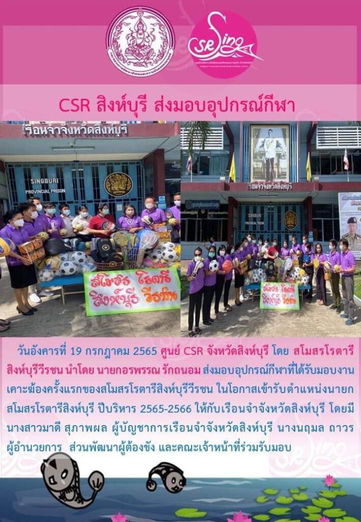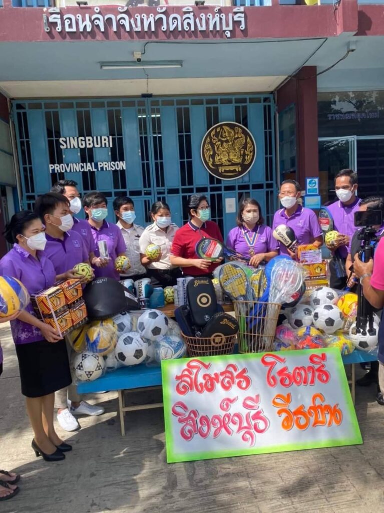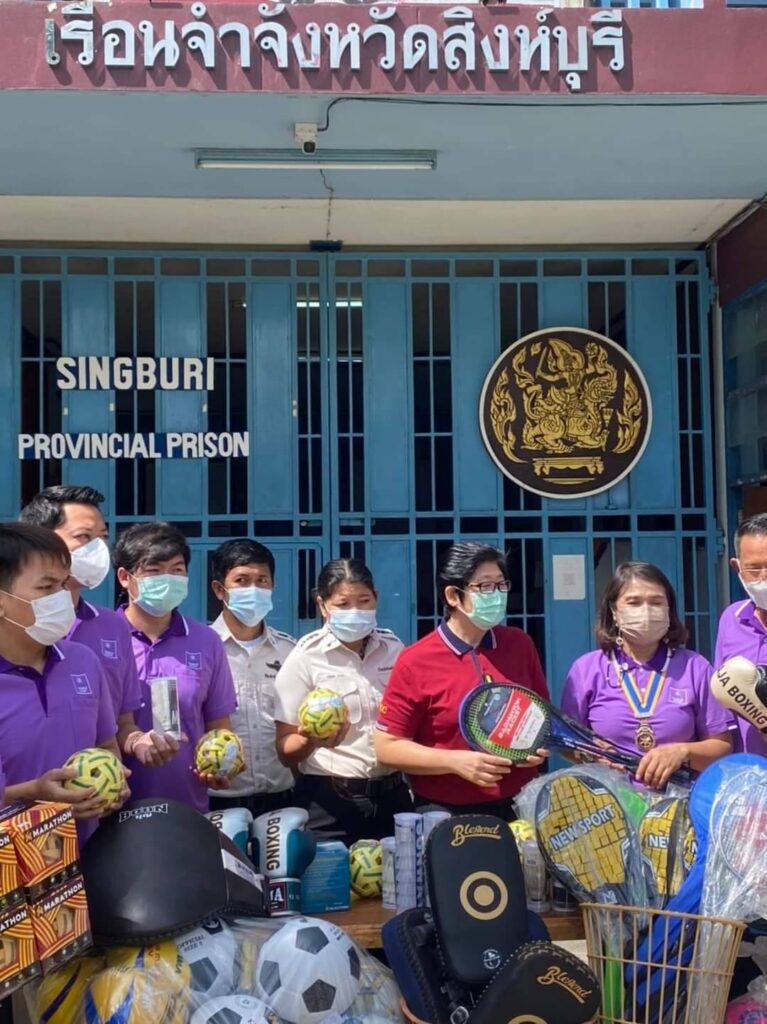 วันนี้วันที่ 19 กรกฎาคม 2565 เวลา 10:00 น. สโมสรโรตารี่สิงห์บุรีวีรชน นำโดย นางอรพรรณ รักถนอม นายกสโมสรโรตารี่สิงห์บุรีวีรชน ได้นำอุปกรณ์กีฬาที่ได้รับมอบจากผู้มีเกียรติที่มามอบให้ในงานเคาะฆ้องครั้งแรกของสโมสรโรตารี่สิงห์บุรีวีรชน เพื่อแสดงความยินดีกับนางอรพรรณ รักถนอม ในโอกาสเข้ารับตำแหน่งนายกสโมสรโรตารีสิงห์บุรี วีรชน ปีบริหาร 2565-2566 แทนการมอบช่อดอกไม้หรือของขวัญแสดงความยินดี เมื่อวันที่ 7 กรกฎาคม 2565 จัดขึ้นที่ภัตราคารไพบูลย์ไก่ย่างปลาเผา ที่ผ่านมา ให้กับเรือนจำจังหวัดสิงห์บุรี โดยมีนางสาวมาดี สุภาพผล ผู้บัญชาการเรือนจำจังหวัดสิงห์บุรี นางนฤมล ถาวร ผู้อำนวยการส่วนพัฒนาผู้ต้องขัง และคณะเจ้าหน้าที่ร่วมรับมอบ บริเวณด้านหน้าเรือนจำจังหวัดสิงห์บุรี ในการนี้ นายชนพร พวงโตนายกก่อตั้งสโมสรโรตารี่สิงห์บุรีวีรชน คณะกรรมการสโมสรฯ และสมาชิกสโมสรฯ ร่วมมอบฯ ซึ่งทางนางสาวมาดี สุภาพผล ผู้บัญชาการเรือนจำจังหวัดสิงห์บุรีได้นำคณะสมาชิกสโมสรโรตารี่สิงห์บุรีวีรชน ชมผลิตภัณฑ์ฝีมือผู้ต้องขัง เพื่อเป็นการประชาสัมพันธ์สินค้าผลิตภัณฑ์ราชทัณฑ์ด้วย