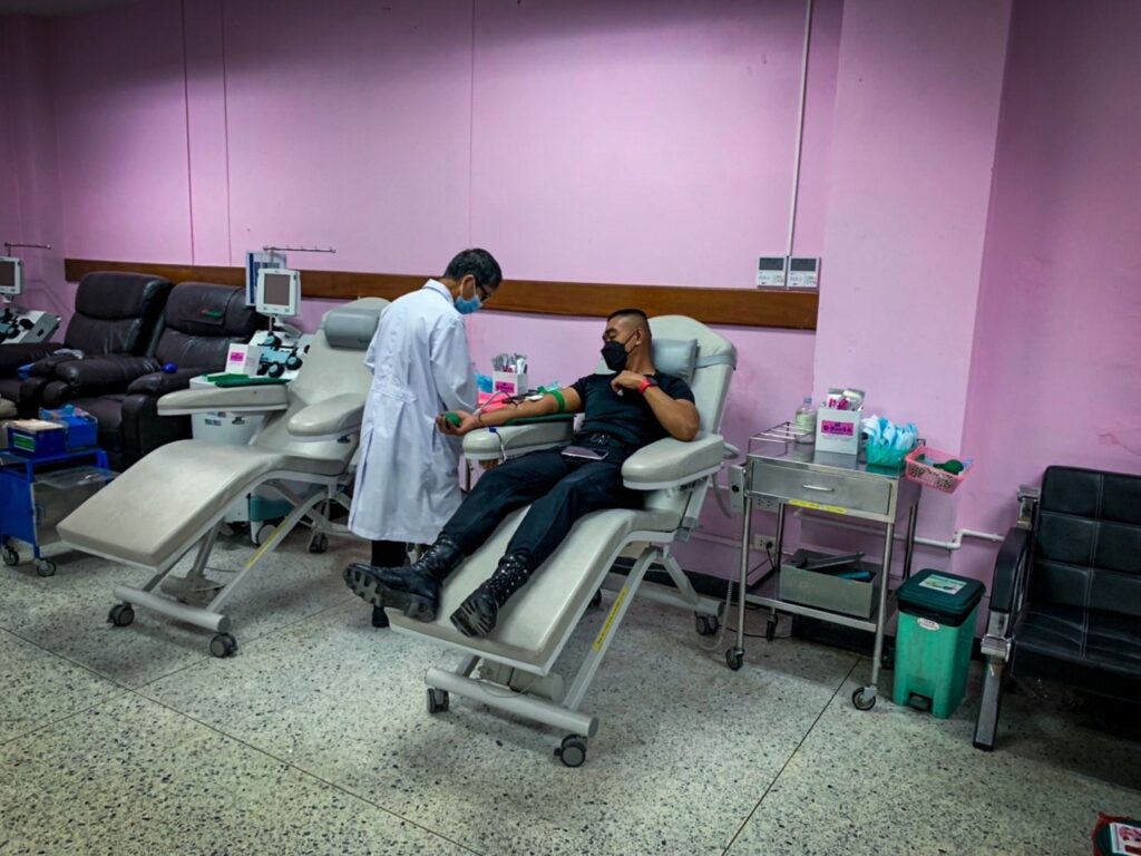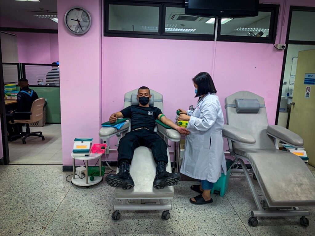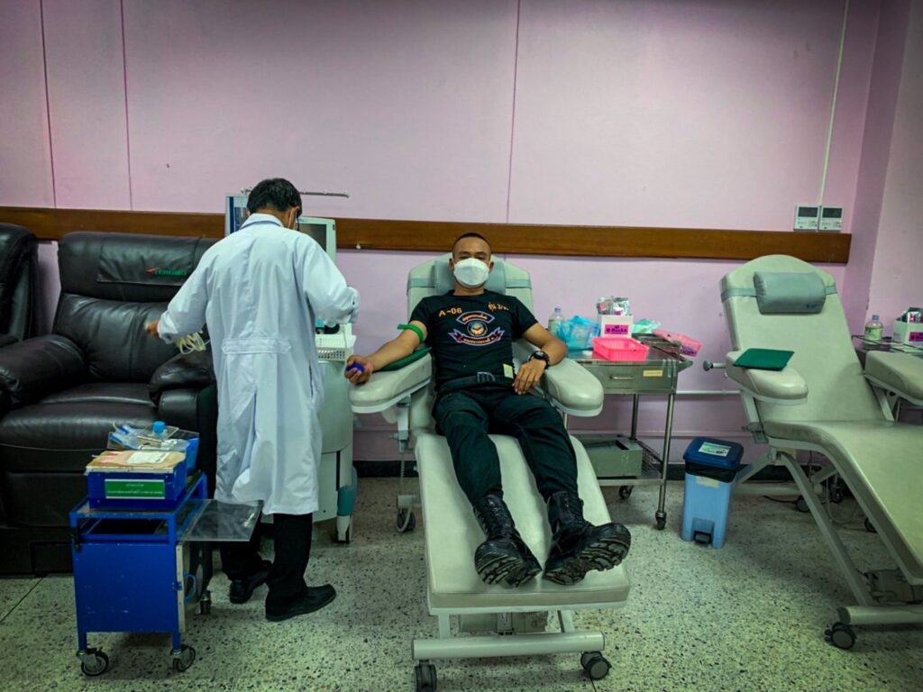 วันที่ 19 ก.ค.2565 ผู้สื่อข่าวได้รับงานว่ากองกำลังสุรศักดิ์มนตรี โดย พันเอก อุทัย นิลเนตร ผู้บังคับการกรมทหารพรานที่ 21/ผู้บังคับหน่วยเฉพาะกิจกรมทหารพรานที่ 21 (ผบ.กรม ทพ.21/ผบ.ฉก.ทพ.21) ได้รับการประสานขอความช่วยเหลือจากญาติผู้ป่วยเพื่อรอรับการบริจาคเลือดอย่างเร่งด่วน จึงสั่งการให้จัดกำลังพลของหน่วย จำนวน 8 นาย เดินทางเข้าร่วมบริจาคเลือดให้กับนาย บุญส่ง นนทะโคตร ซึ่งป่วยเป็นไข้ติดเชื้อทำให้เกร็ดเม็ดเลือดต่ำอยู่ในช่วงวิกฤต จึงจำเป็นต้องการใช้เกร็ดเลือดเพื่อทำการรักษาอย่างเร่งด่วน โดยผ่านทางศูนย์บริการโลหิตแห่งชาติสภากาชาด โรงพยาบาลเลย ได้ปริมาณโลหิตรวมเป็นจำนวนทั้งสิ้น 2,250 ซีซี โดยทางญาติของผู้ป่วยดีใจเป็นอย่างมากที่มีทหารพราน กรม ทพ.21 รีบเดินทางมาบริจาคเลือดหลังจากที่ได้ประสานขอความช่วยเหลือไป โดยขอบคุณ ผบ.กรม ทพ.21/ผบ.ฉก.ทพ.21 และกำลังพลที่ยื่นมือเข้าช่วยเหลือในครั้งนี้เป็นการสร้างสังคมแห่งการให้และแบ่งปันน้ำใจให้กับผู้ป่วยและญาติๆด้วยรอยยิ้มที่อบอุ่น “เพราะทหารเป็นที่พึ่งของประชาชนในทุกโอกาส”