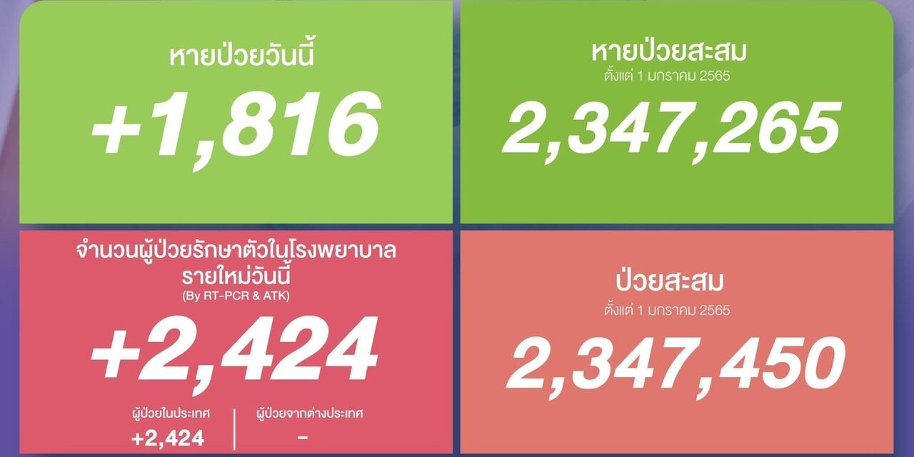 หายป่วยสะสม 2,347,265 ราย (ตั้งแต่ 1 มกราคม 2565)