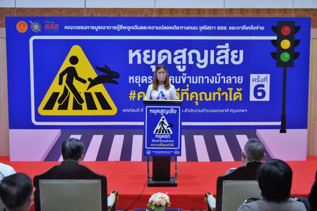 นางสาวรุ่งอรุณ ลิ้มฬหะภัณ ผู้อำนวยการสำนักสนับสนุนการควบคุมปัจจัยเสี่ยงทางสังคม สสส. กล่าวว่า จากรายงานสถานการณ์อุบัติเหตุทางถนนของไทยปี 2561-2564 พบว่า “คนเดินเท้า” เป็นกลุ่มผู้ใช้ถนนที่เสี่ยงต่อการบาดเจ็บ และเสียชีวิตมากกว่ากลุ่มอื่น สอดคล้องกับสถิติคดีอุบัติเหตุจราจรปี 2554-2563 ของสำนักงานตำรวจแห่งชาติ พบว่า มีคนเดินเท้าได้รับอุบัติเหตุเฉลี่ยปีละ 2,500 ราย หรือเฉลี่ยวันละ 7 ราย ส่วนใหญ่เกิดขึ้นในพื้นที่ กทม. และอุบัติเหตุชนคนเดินเท้าบนทางหลวง เฉลี่ยเกินครึ่งมีผู้เสียชีวิต ข้อมูลปี 2564 ยังพบว่า มีสัดส่วนที่เพิ่มสูงขึ้นเป็น 65% โดยมีสาเหตุจากการขับรถเร็วเกินอัตราที่กำหนด จึงอยากเน้นย้ำว่าการใช้ความเร็วที่ 30 กิโลเมตรต่อชั่วโมง ในเขตเมือง-เขตชุมชน เช่น หน้าโรงเรียน หน้าโรงพยาบาล หน้าตลาด หรือหน้าสถานที่ราชการเป็นความเร็วที่ทางองค์การอนามัยโลกแนะนำว่าหากเกิดการชนที่ความเร็วระดับนี้ จะช่วยลดโอกาสเสียชีวิตได้ถึง 90% จึงขอเชิญชวนลดความเร็วก่อนถึงบริเวณทางข้าม เพื่อลดอุบัติเหตุทางถนนและสร้างวัฒนธรรมของการขับขี่ที่ปลอดภัย