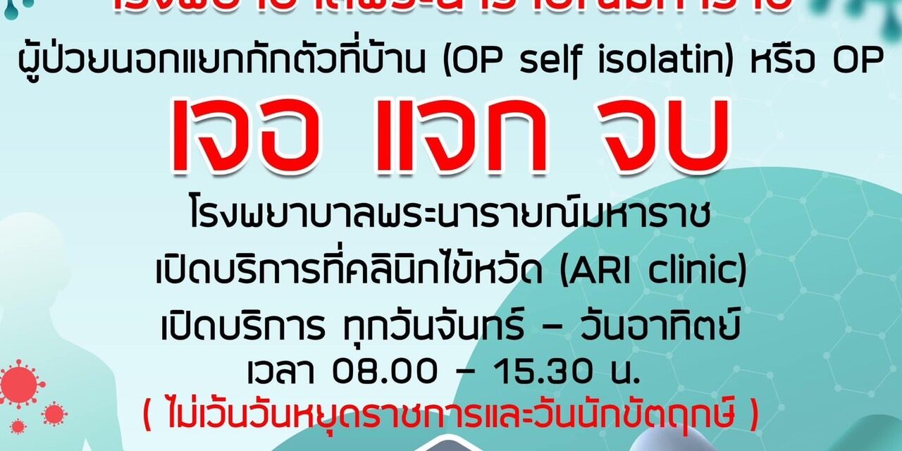 ๒๑ กรกฎาคม ๒๕๖๕ แพทย์หญิงนุชรินทร์ อักษรดี ผู้อำนวยการโรงพยาบาลพระนารายณ์มหาราชประกาศเปิดให้บริการคลินิกเจอแจกจบ หรือคลินิกไข้หวัด ARI ทุกวัน (ไม่เว้นวันหยุดราชการและวันนักขัตฤกษ์) ในเวลา ๐๘.๐๐-๑๕.๓๐ น. สถานที่ให้บริการบริเวณด้านหน้าโรงพยาบาล เพื่อความสะดวกกับผู้รับบริการที่ตรวจ ATK พบ ๒ ขีด ท่านสามารถลงทะเบียน โดยสแกนคิวอาร์โค้ด ยืนยันตัวตนและสแกนกรอกประวัติให้ถูกต้องครบถ้วน (จำเป็นต้องสแกนทั้ง ๒ คิวอาร์โค้ด) ผ่านช่องทางเพจเฟสบุ๊คโรงพยาบาลพระนารายณ์มหาราช จากนั้นมารับยาที่คลินิก เจอแจกจบ โดยแจ้งเจ้าหน้าที่ว่าลงทะเบียนออนไลน์แล้ว สำหรับท่านที่ไม่สามารถลงทะเบียนได้ กรุณา Walk in มารับยาได้ทุกวัน ในเวลา ๐๘.๐๐-๑๕.๓๐ น.