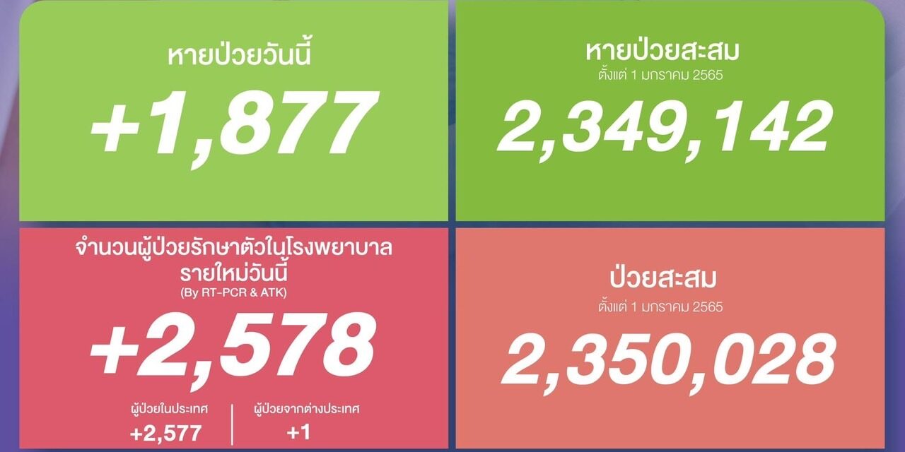ผู้ป่วยสะสม 2,350,028 ราย (ตั้งแต่ 1 มกราคม 2565)