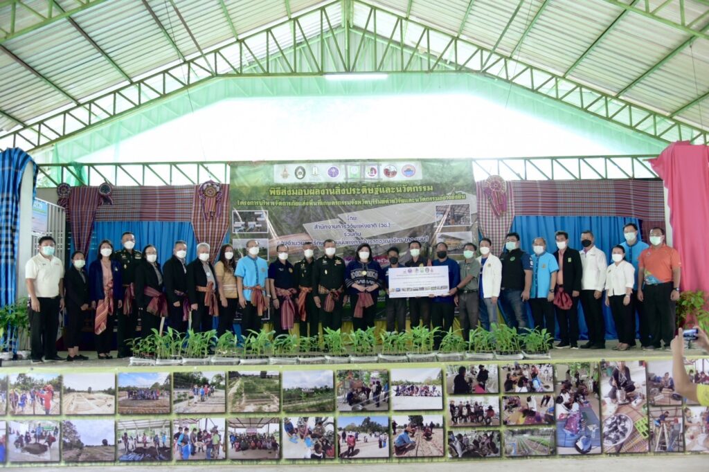 สำหรับพิธีส่มอบนวัตกรรมในครั้งนี้ มีสมาชิกหมู่บ้านและเกษตรกรที่เข้าร่วมโครงการฯ ในพื้นที่ตำบลชุมแสงเข้าร่วมงานกว่า 200 คน โดยผลงานนวัตกรรมที่ (กอ.รมน.) ร่วมกับ (วช.) และ (มมส.) นำมาส่งมอบประกอบด้วย 4 กิจกรรม 12 นวัตกรรม ได้แก่ กิจกรรมที่ 1 : กิจกรรมการพัฒนานวัตกรรมบริหารจัดการน้ำเพื่อการเกษตร ประกอบด้วย ระบบการจัดสรรน้ำตามศักยภาพน้ำต้นทุน จำนวน 1 ชุดข้อมูล,ชุดข้อมูลการบริหารจัดการน้ำเพื่อการเกษตร จำนวน 1 ชุดข้อมูล,ชุดระบบสูบน้ำด้วยพลังงานเเสงอาทิตย์เเบบเคลื่อนย้ายได้เพื่อการเกษตร จำนวน 3 ชุด,ชุดนวัตกรรมสูบน้ำและกระจายน้ำพลังงานแสงอาทิตย์ จำนวน 3 ชุด และชุดนวัตกรรมหน่วยเก็บกักน้ำย่อยและกระจายน้ำและสูบและจ่ายน้ำพลังงานแสงอาทิตย์แบบเคลื่อนที่ จำนวน 3 ชุด กิจกรรมที่ 2 : การพัฒนานวัตกรรมในการยกระดับการผลิตข้าวหอมมะลิคุณภาพสูง ประกอบด้วย ชุดระบบอบแห้งด้วยรังสีอินฟราเรดเเบบถังหมุนชนิดเคลื่อนย้ายได้ระบบไฮบริด จำนวน 1 ชุด และชุดนวัตกรรมแปรรูปเพื่อเพิ่มคุณภาพข้าวเปลือกและเมล็ดพันธุ์ 1 ชุด กิจกรรมที่ 3 : การพัฒนานวัตกรรมเกษตรแบบผสมผสานเพื่อแก้ปัญหาความยากจนด้วยระบบสมาร์ทฟาร์ม ประกอบด้วย นวัตกรรมเกษตรแบบผสมผสาน จำนวน 1 ชุด และกิจกรรมที่ 4 : การส่งเสริมนวัตกรรมชุมชนพึ่งตนเองและใช้ประโยชน์จากป่าชุมชน ประกอบด้วย ชุดระบบผลิตไฟฟ้าด้วยพลังงานแสงอาทิตย์ชุมชนพึ่งตนเอง จำนวน 1 ชุด, ชุดเตาเผาชีวมวล จำนวน 1 ชุด,ชุดเครื่องผลิตน้ำส้มควันไม้ จำนวน 1 ชุด และชุดผลิตปุ๋ยจากผลิตภัณฑ์เหลือทิ้งจากป่าชุมชน จำนวน 1 ชุด โดยมี พันเอก โอภาส จันทร์อุดม รองผู้อำนวยการ (กอ.รมน.) จังหวัดบุรีรัมย์ ผู้แทนผู้ว่าราชการจังหวัดบุรีรัมย์ เป็นผู้รับมอบนวัตกรรมฯ และได้ส่งมอบนวัตกรรมดังกล่าวต่อให้แก่ตัวแทนของพื้นที่ 3 หมู่บ้านของตำบลชุมแสง ได้แก่ บ้านตามา บ้านสุขวัฒนา และบ้านสุขสำราญ เพื่อให้พื้นที่ทั้ง 3 หมู่บ้านที่กล่าวมา นำองค์ความรู้และนวัตกรรมมาประยุกต์ใช้ในการแก้ปัญหาภัยแล้ง ก่อให้เกิดเกิดการบริหารจัดการแหล่งน้ำเพื่อใช้ประโยชน์ทางการเกษตรให้ได้มากที่สุด ซึ่งทำการแก้ปัญหาจากต้นน้ำ กลางน้ำ และปลายน้ำ เพื่อทำให้ชีวิตความเป็นอยู่ของเกษตรกรและประชาชนมีความเป็นอยู่ที่ดีขึ้นได้อย่างยั่งยืน