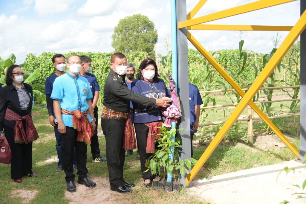 วันที่ 24 กรกฎาคม 2565 กองอำนวยการรักษาความมั่นคงภายในราชอาณาจักร (กอ.รมน.) ร่วมกับ สำนักงานการวิจัยแห่งชาติ (วช.) กระทรวงการอุดมศึกษา วิทยาศาสตร์ วิจัยและนวัตกรรม (อว.) และมหาวิทยาลัยมหาสารคาม (มมส.) จัดพิธีส่งมอบนวัตกรรมและตรวจเยี่ยมการดำเนินโครงการ “การบริหารจัดการภัยแล้งพื้นที่เกษตรกรรมจังหวัดบุรีรัมย์ด้วยวิจัยและนวัตกรรมอย่างยั่งยืน” เพื่อนำองค์ความรู้จากการวิจัยและนวัตกรรมมาใช้ประโยชน์ทางการเกษตร โดยมี พลโท อุดม โกษากุล ผู้อำนวยการศูนย์ประสานการปฏิบัติที่ 1 (กอ.รมน.) และ ดร.วิภารัตน์ ดีอ่อง ผู้อำนวยการสำนักงานการวิจัยแห่งชาติ (วช.) เป็นประธานในพิธีส่งมอบฯ และพันเอก โอภาส จันทร์อุดม รองผู้อำนวยการ (กอ.รมน.) จังหวัดบุรีรัมย์ ผู้แทนผู้ว่าราชการจังหวัดบุรีรัมย์ กล่าวต้อนรับ พร้อมด้วย ศาสตราจารย์ ดร.อนงค์ฤทธิ์ แข็งแรง รองอธิการบดีฝ่ายพัฒนาโครงสร้างพื้นฐาน วิจัยและนวัตกรรม มหาวิทยาลัยมหาสารคาม หัวหน้าโครงการฯ กล่าวรายงาน ซึ่งในพิธีได้รับเกียรติจาก ผู้ทรงคุณวุฒิ (วช.) หัวหน้าหน่วยงานราชการในท้องถิ่น ผู้นำชุมชน เกษตรกร และสื่อมวลชน เข้าร่วมงานณ ศูนย์เรียนรู้เศรษฐกิจพอเพียงทุ่งเมืองทอง ตำบลชุมแสง อำเภอสตึก จังหวัดบุรีรัมย์
